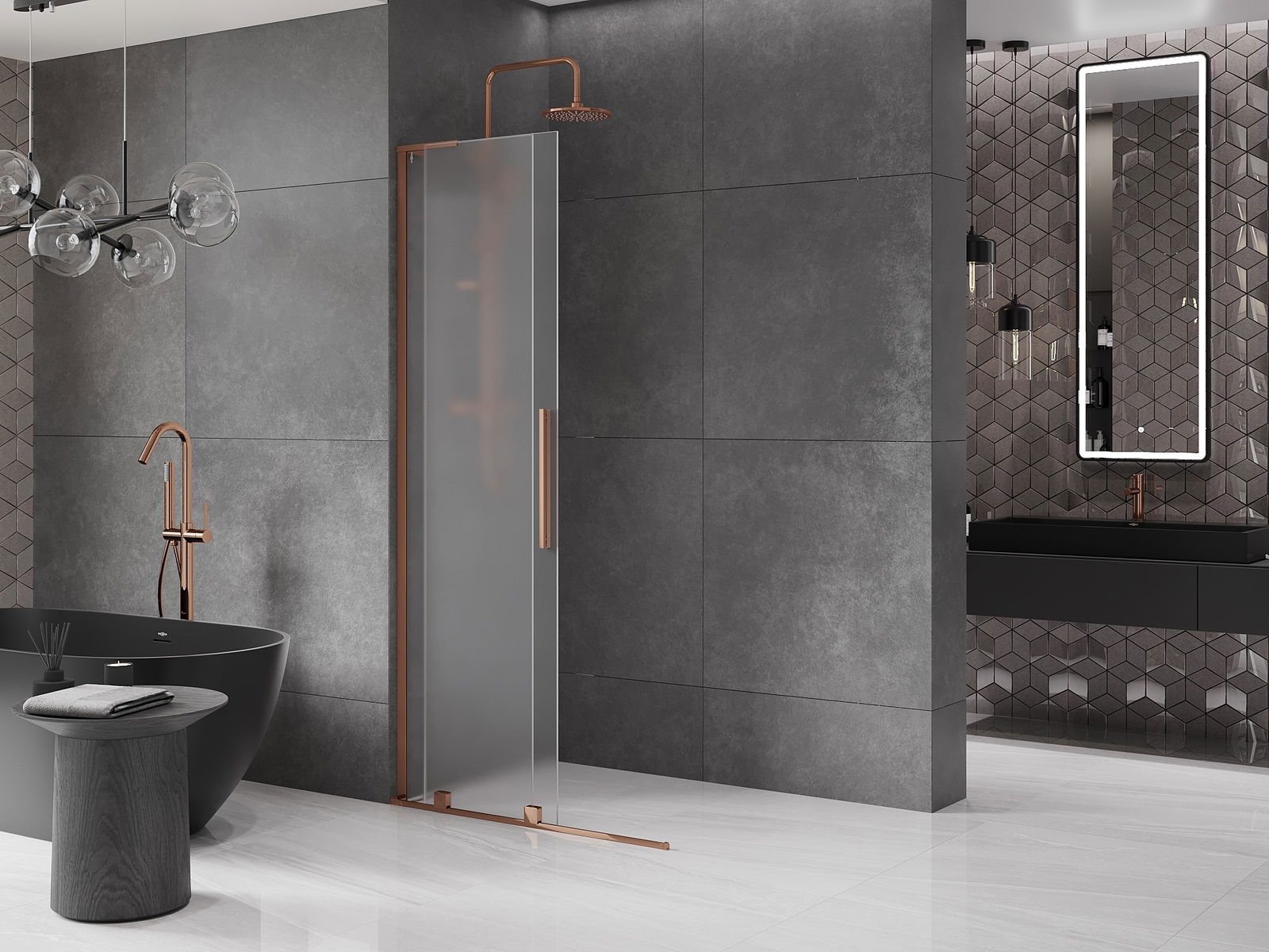 Mexen Velar L parete doccia scorrevole Walk-in 90 x 200 cm, brinata 8 mm, oro rosa - 871-090-003-33-60
