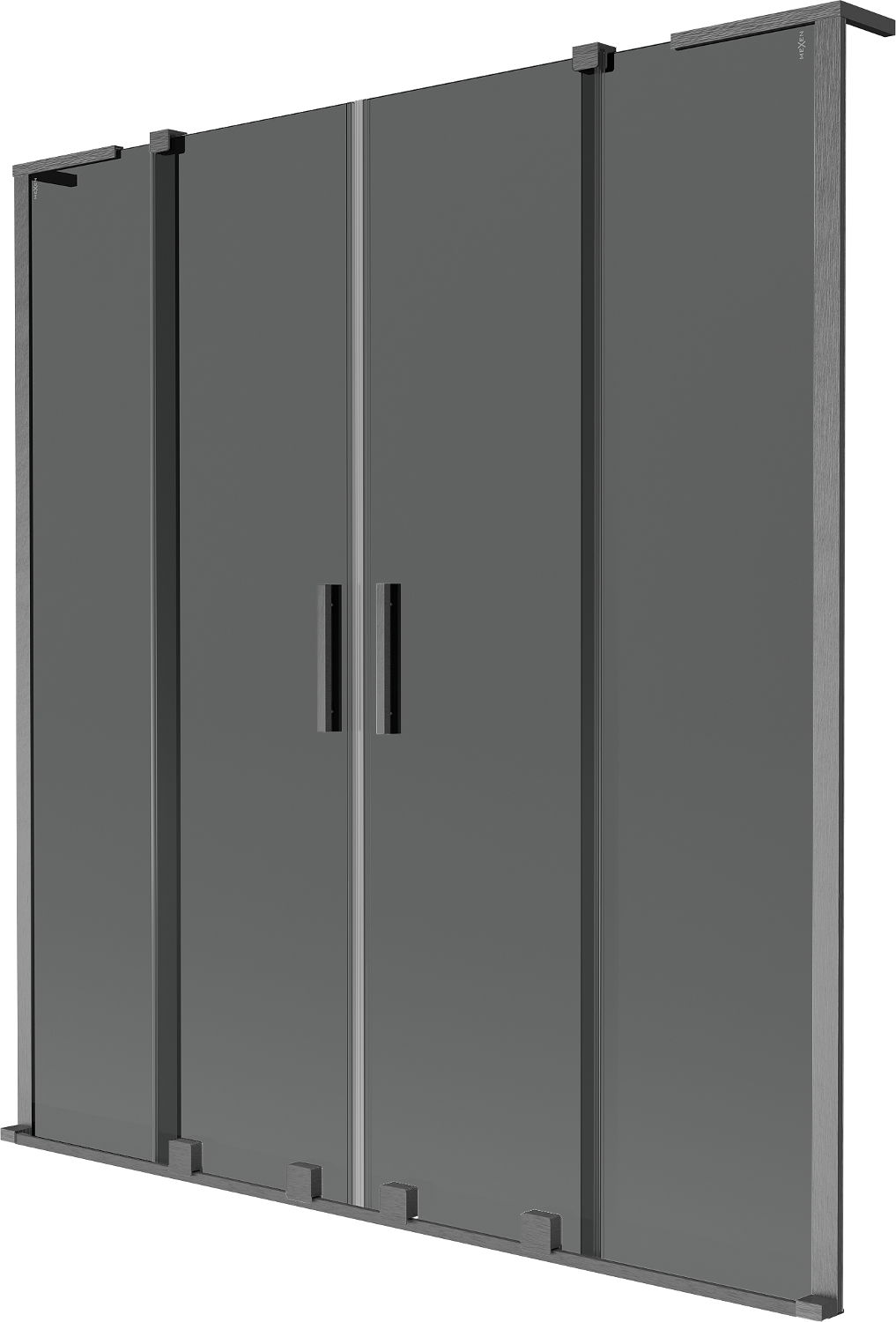 Mexen Velar L Duo paravento da bagno a 2 ante scorrevoli 160 x 150 cm, grafite, grigio canna di fucile spazzolato