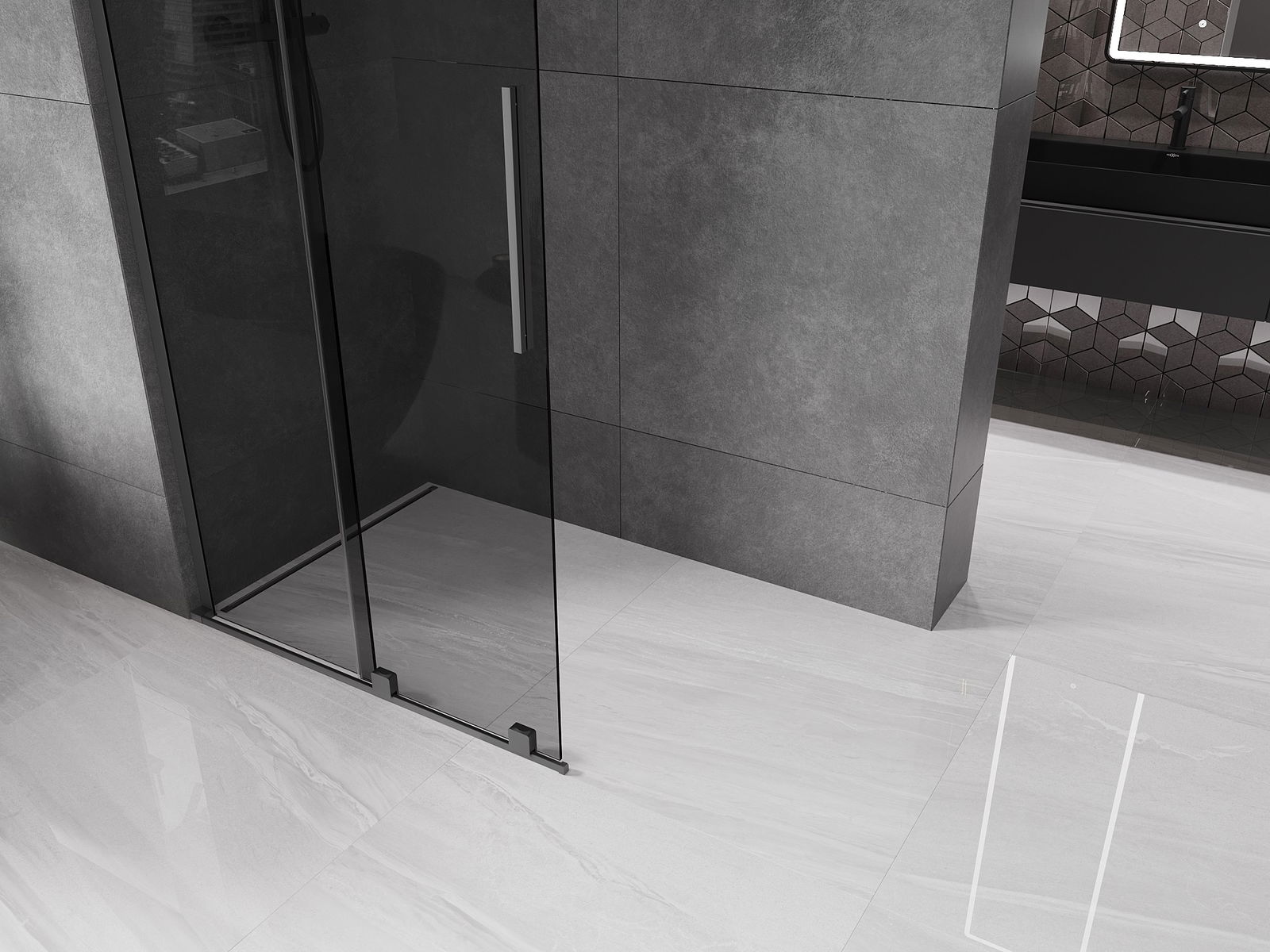 Mexen Velar L parete doccia scorrevole Walk-in 100 x 200 cm, grafite 8 mm, gun metal - 871-100-003-43-95