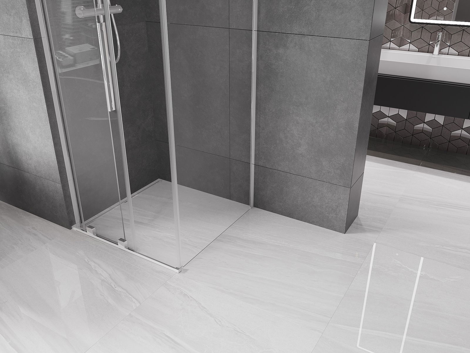 Il prodotto, a seconda delle esigenze, può essere installato sia sul piatto doccia che direttamente sul pavimento. Il metodo di installazione universale consente di adattare il prodotto a diversi tipi di bagni e configurazioni di spazio.