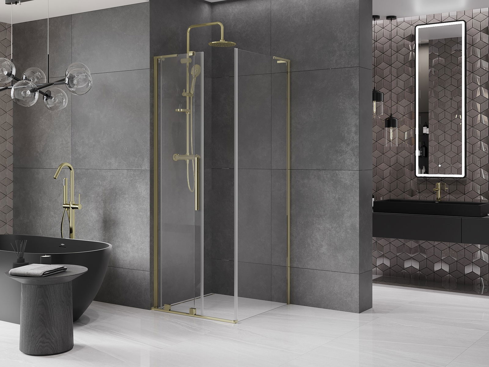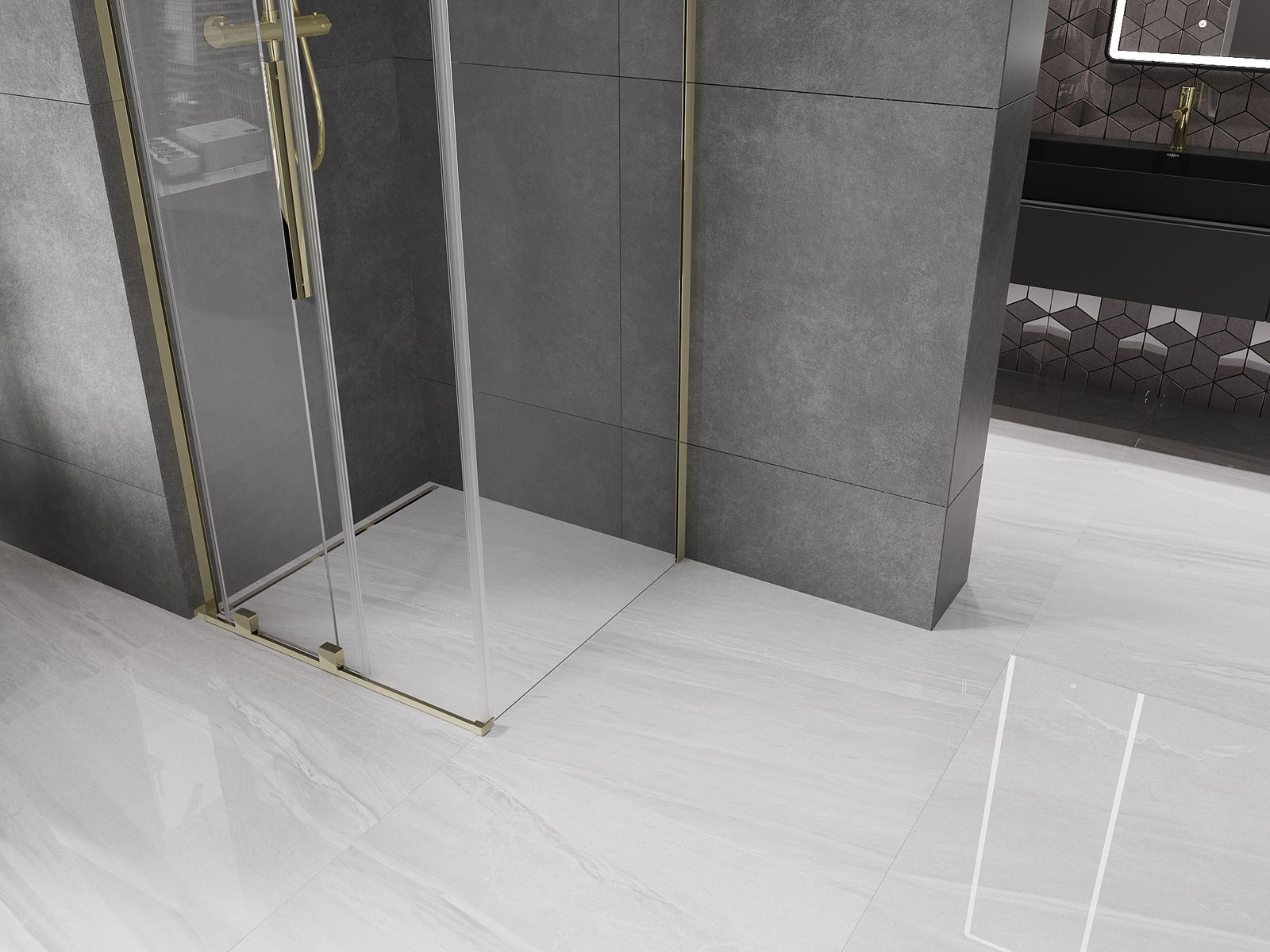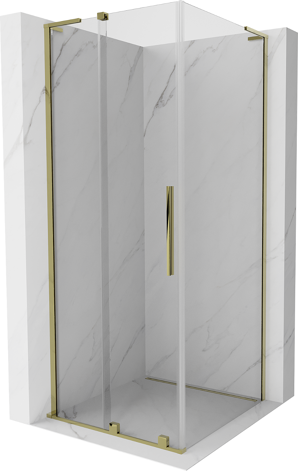 Mexen Velar L cabina doccia scorrevole 100 x 100 cm, trasparente, oro - 871-100-100-03-50