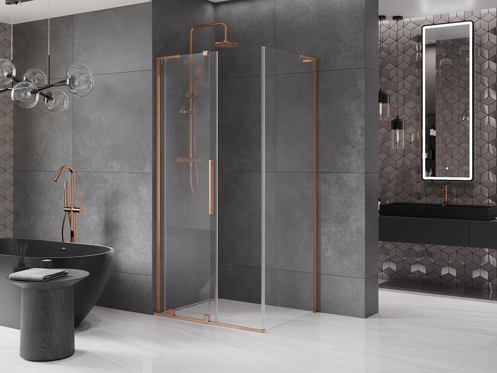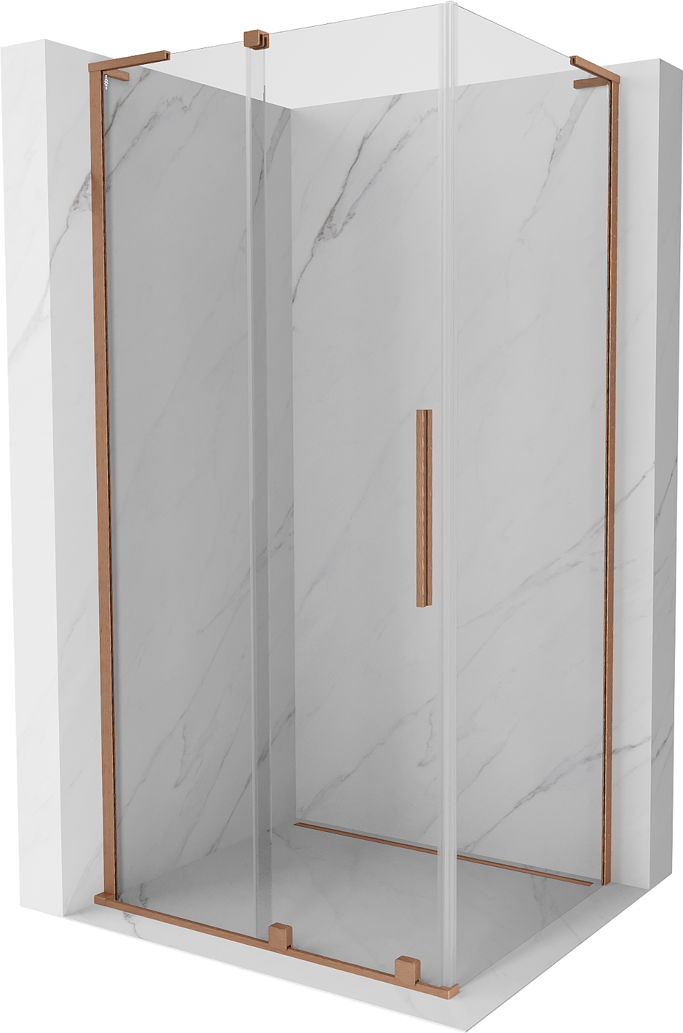 Mexen Velar L cabina doccia scorrevole 90 x 70 cm, trasparente, rame spazzolato - 871-090-070-03-65