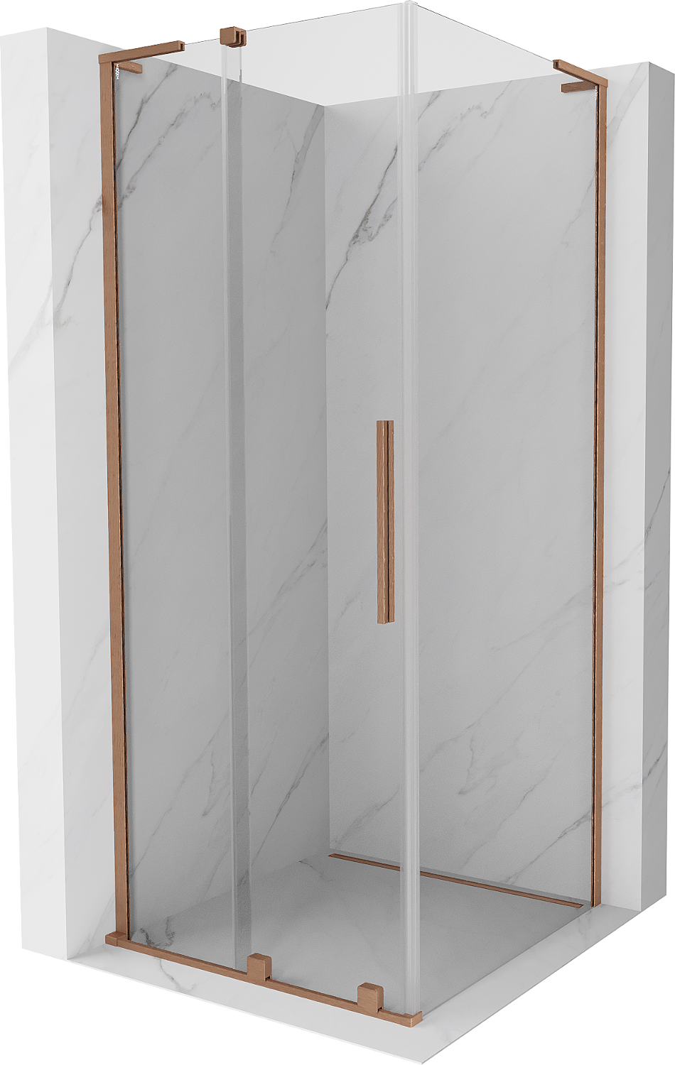 Mexen Velar L cabina doccia scorrevole 100 x 100 cm, trasparente, rame spazzolato - 871-100-100-03-65
