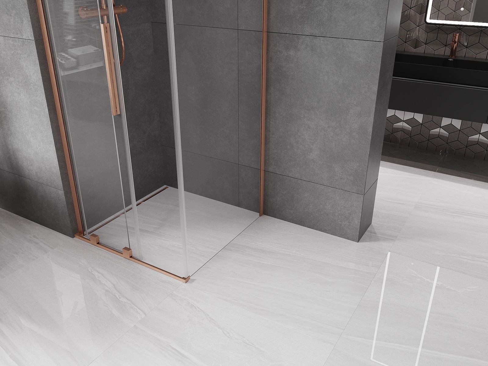 Mexen Velar L cabina doccia scorrevole 120 x 120 cm, trasparente, rame spazzolato - 871-120-120-03-65