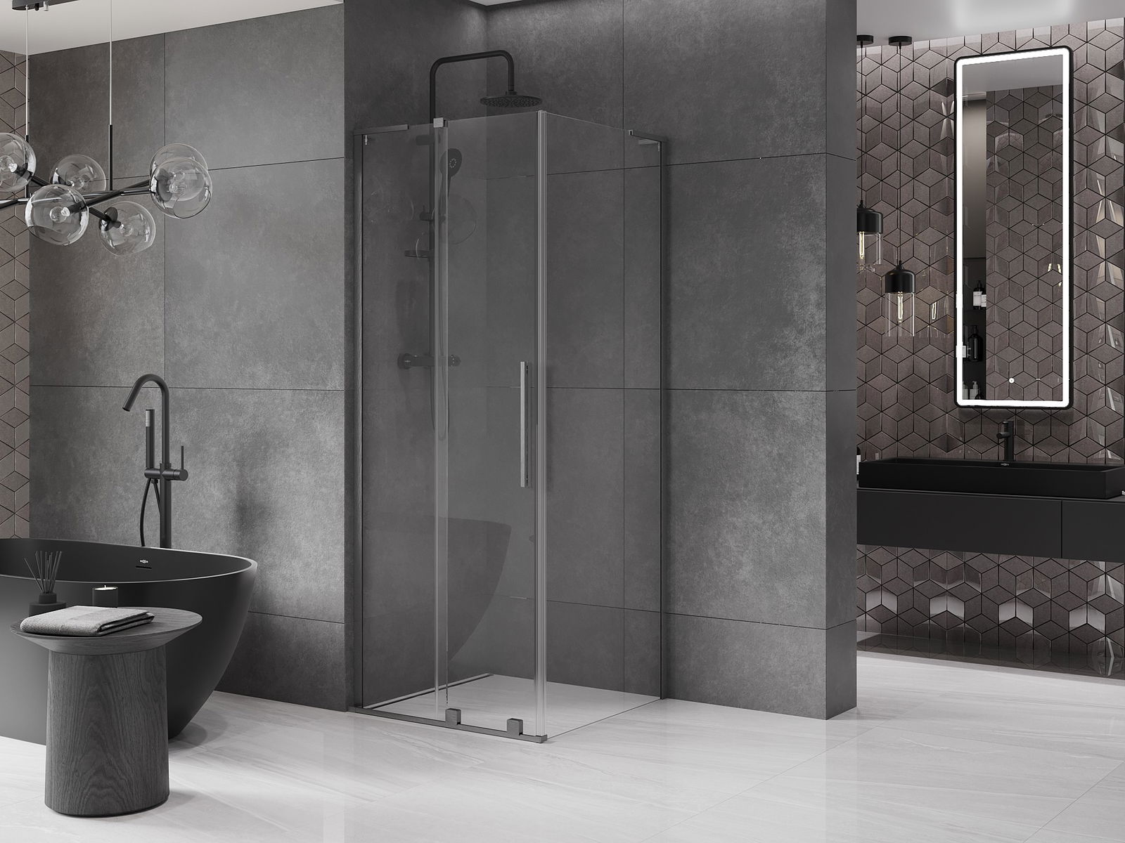 La comoda e pratica maniglia è realizzata in acciaio inossidabile. La forma alla moda unita alla finitura abbinata al colore dei profili conferisce all'intero un aspetto moderno e stiloso, evidenziando l'estetica di ogni bagno.