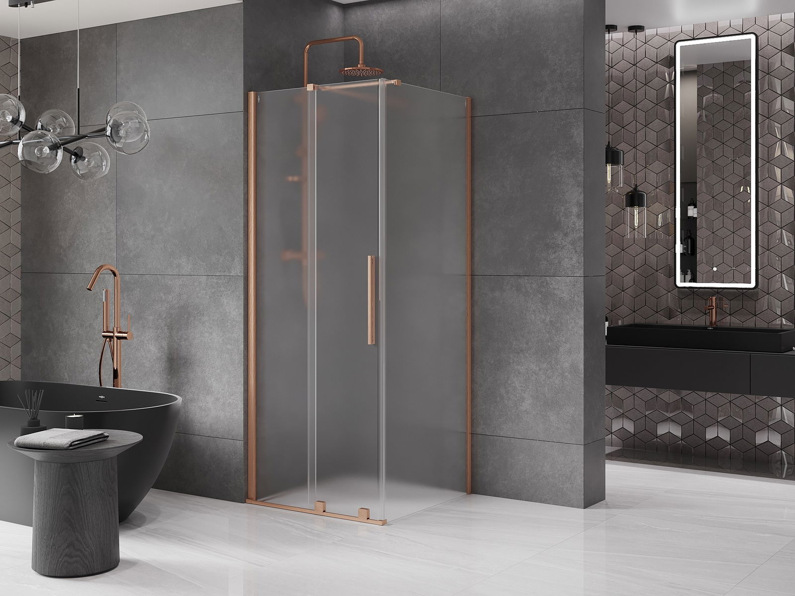 Mexen Velar cabina doccia scorrevole 100 x 100 cm, vetro smerigliato, rame spazzolato - 871-100-100-31-65