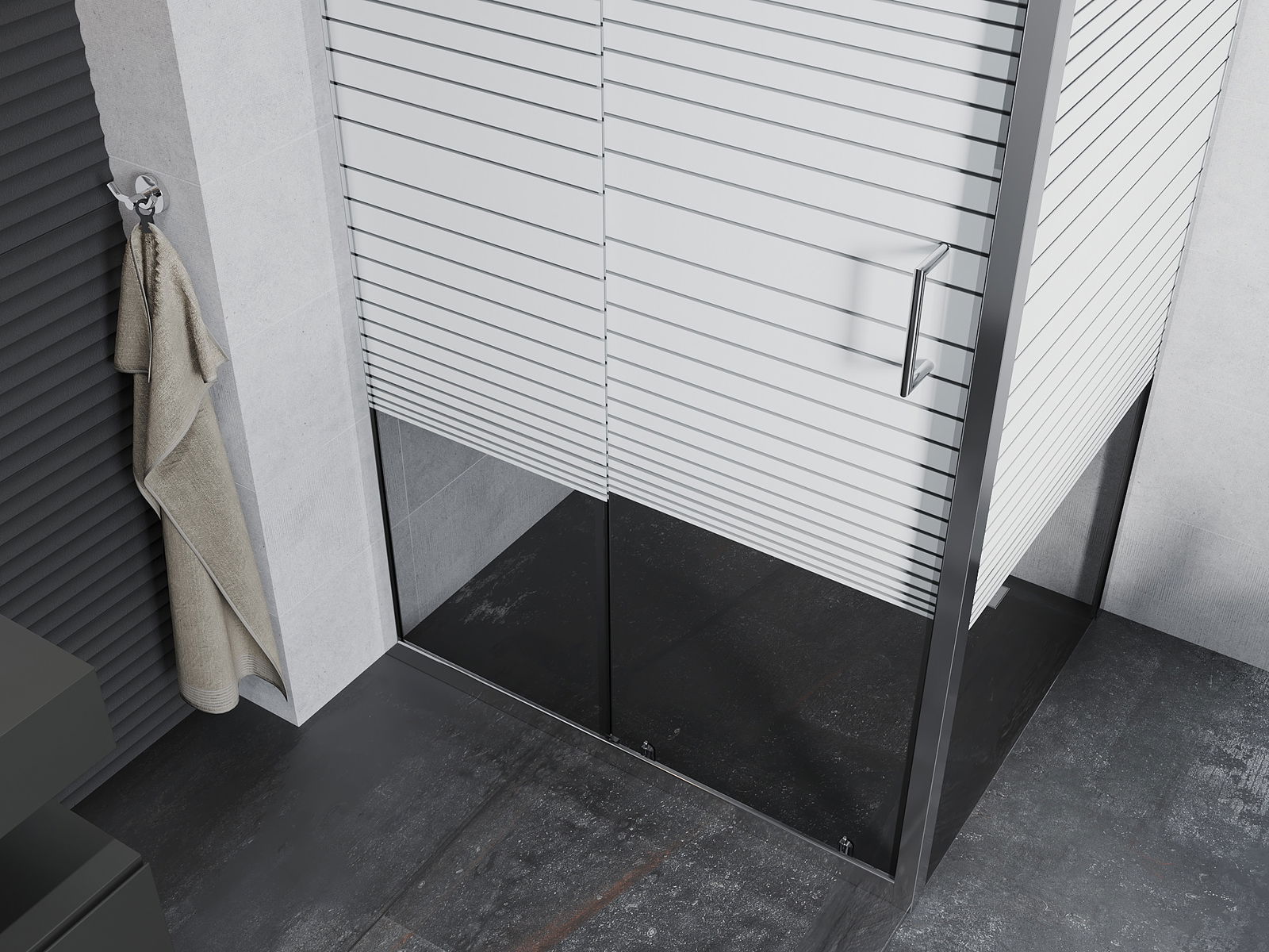 L'impugnatura pratica e comoda è realizzata in metallo durevole e resistente. La forma alla moda combinata con una finitura abbinata al colore dei profili conferisce all'insieme un aspetto moderno e elegante, enfatizzando l'estetica di ogni bagno.