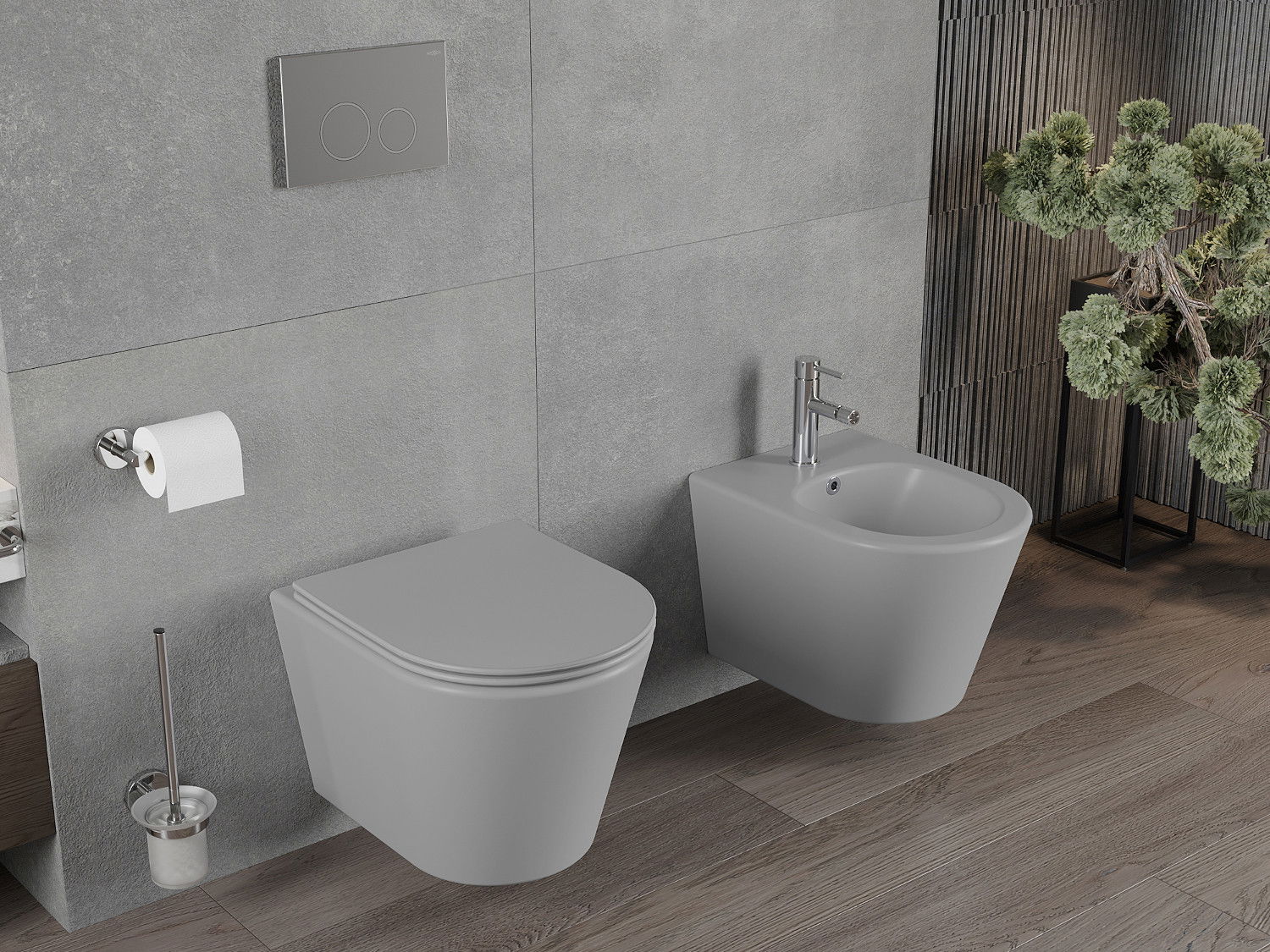 La superficie opaca della ceramica sottolinea perfettamente il carattere del colore del prodotto, conferendogli una finitura unica e distintiva. La struttura sottile della ceramica opaca porta eleganza al bagno, creando uno spazio estetico.