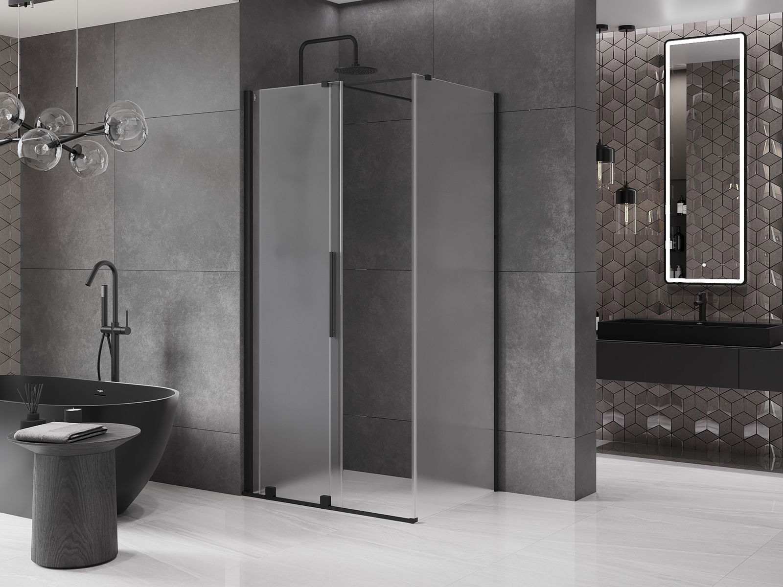 Mexen Velar cabina doccia scorrevole 120 x 80 cm, smerigliato, nero - 871-120-080-31-70