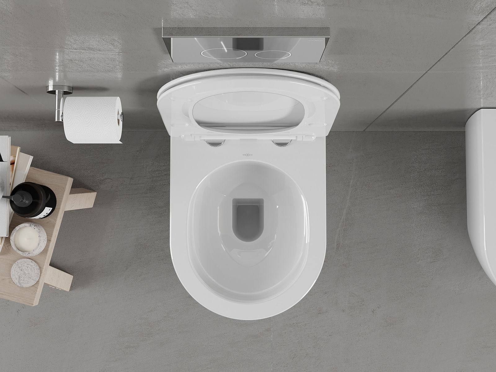 La tecnologia senza bordo consente una distribuzione accurata dell'acqua attorno all'interno del vaso WC, il che contribuisce a uno sciacquo efficace. Il sistema senza bordi permette di mantenere il WC pulito, eliminando lo sviluppo di batteri.