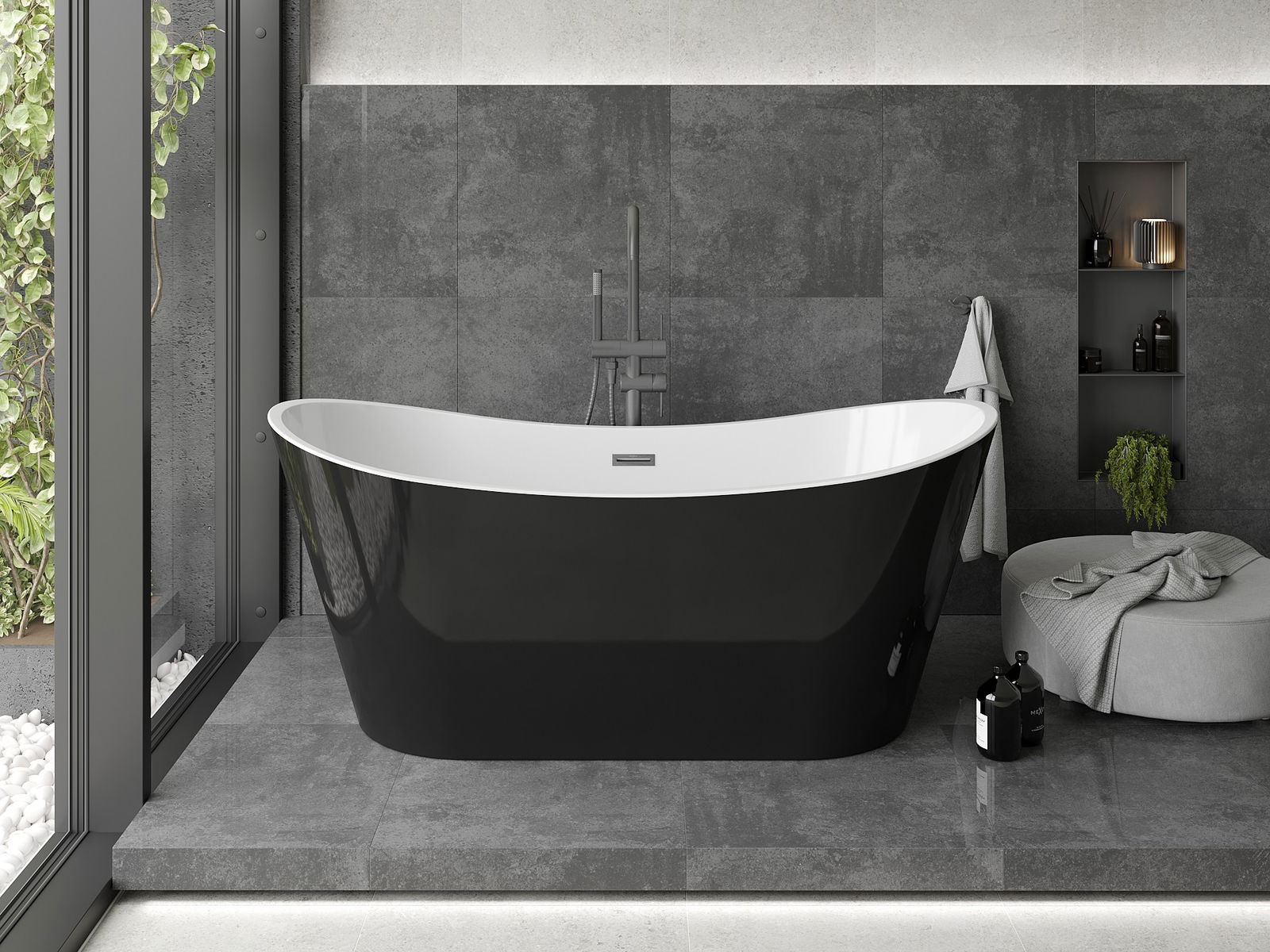 Scopri il lusso della Mexen Montana, una vasca da bagno indipendente delle dimensioni di 150 x 75 cm, progettata per il tuo comfort. Realizzata in acrilico sanitario, combina l'eleganza del colore bianco e nero con una moderna finitura grigio gun spazzolato. Grazie alla sua forma ovale e alla finitura lucida, la vasca si adatta perfettamente a qualsiasi stile di bagno. Offre un foro del troppo pieno ed è resistente all'opacizzazione e ai raggi UV, garantendo durata e facilità di pulizia.