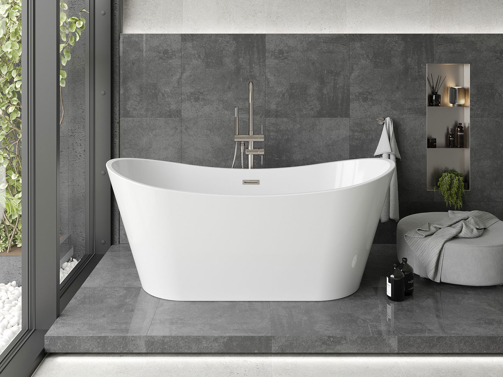 Mexen Montana è una vasca da bagno indipendente eccezionale con dimensioni di 170 x 80 cm, realizzata in acrilico sanitario, che garantisce alta qualità e durata. La sua elegante superficie bianca combinata con dettagli in nichel spazzolato la rende un'aggiunta ideale per i bagni moderni. La vasca ha un foro troppopieno ed è resistente all'opacizzazione e alle radiazioni UV, prolungando la sua estetica. Grazie alle sue dimensioni e alla forma ovale, offre un comfort d'uso del massimo livello.