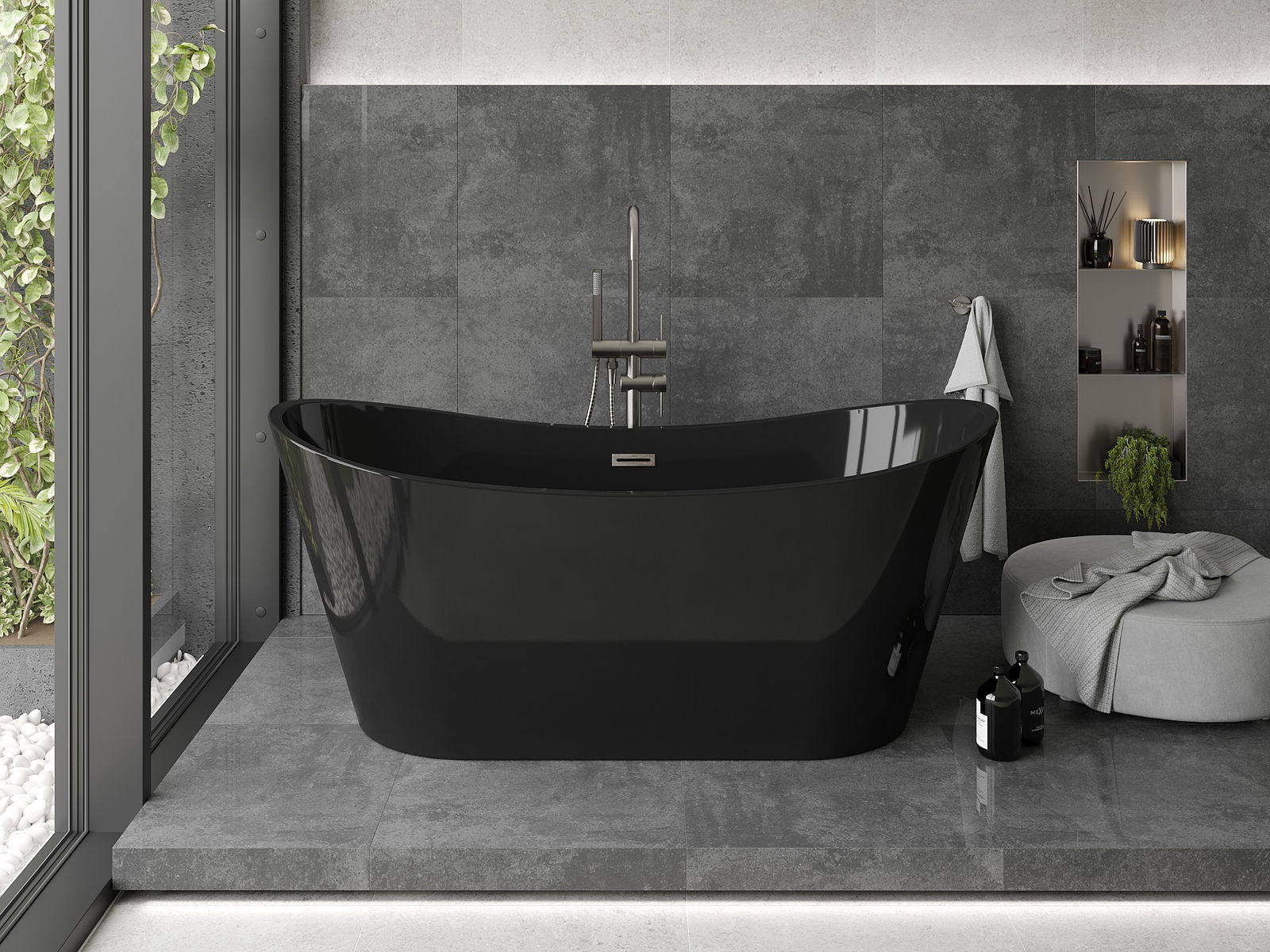 Mexen Montana vasca da bagno autoportante 170 x 80 cm, nera, troppopieno nichel spazzolato - 52011708070-97