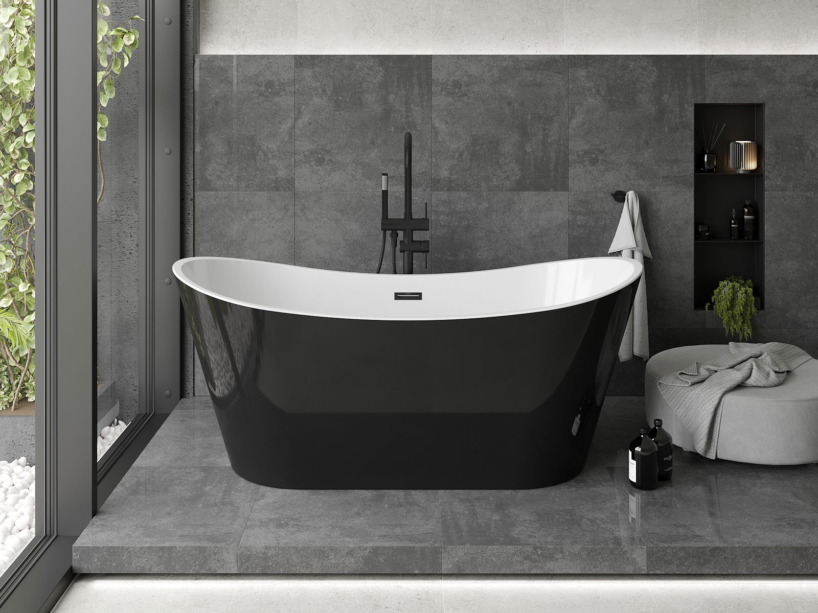 Mexen Montana vasca da bagno autoportante 170 x 80 cm, bianca/nera, troppopieno nero - 52011708075-70