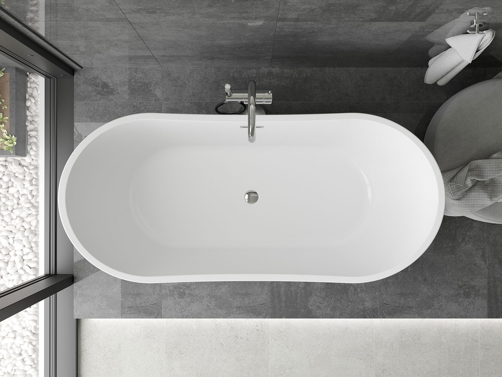 La vasca da bagno free-standing delle dimensioni di 180 x 80 cm è una scelta eccellente per chi apprezza l'eleganza e il comfort. Realizzata in acrilico sanitario, la sua colorazione bianca e nera combinata con la finitura cromata crea un design moderno. La forma ovale e la superficie lucida le conferiscono un aspetto unico. La vasca è dotata di foro troppopieno e sifone, offrendo praticità d'uso. Grazie alla resistenza all'appannamento e alle radiazioni UV, mantiene la sua estetica per lungo tempo.