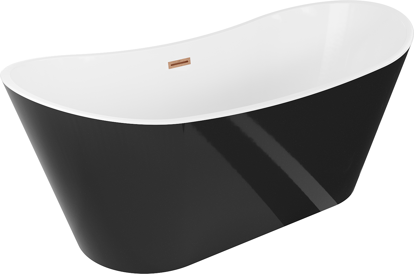 Mexen Montana vasca da bagno freestanding 180 x 80 cm, bianca/nera, troppopieno in rame spazzolato - 52011808075-65