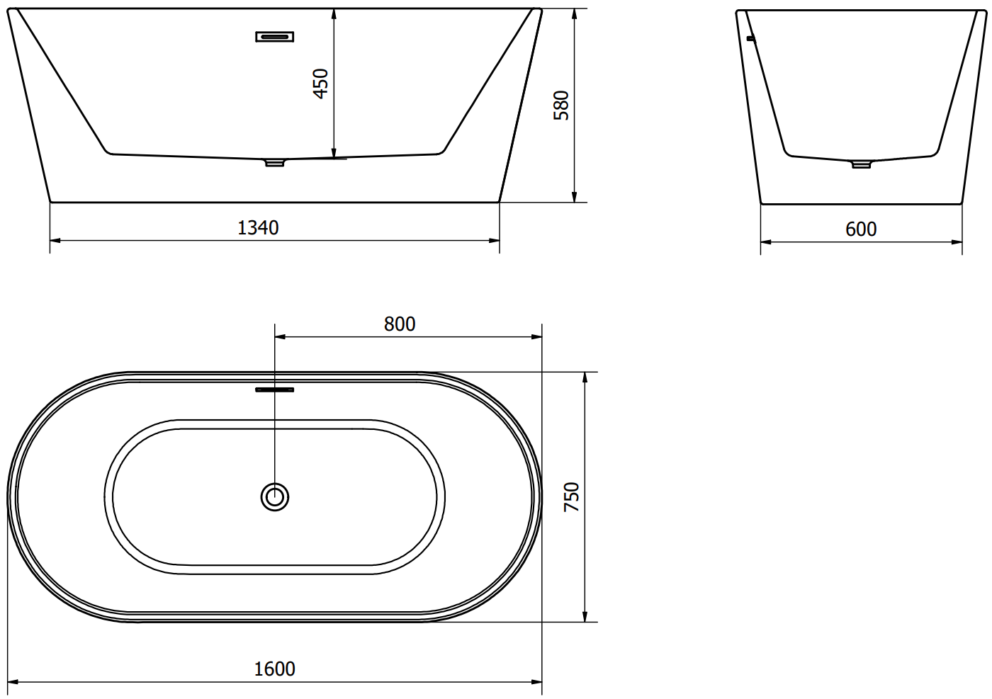 Mexen Luna vasca da bagno autoportante 160 x 75 cm, bianca, troppopieno cromato - 52031607500-01