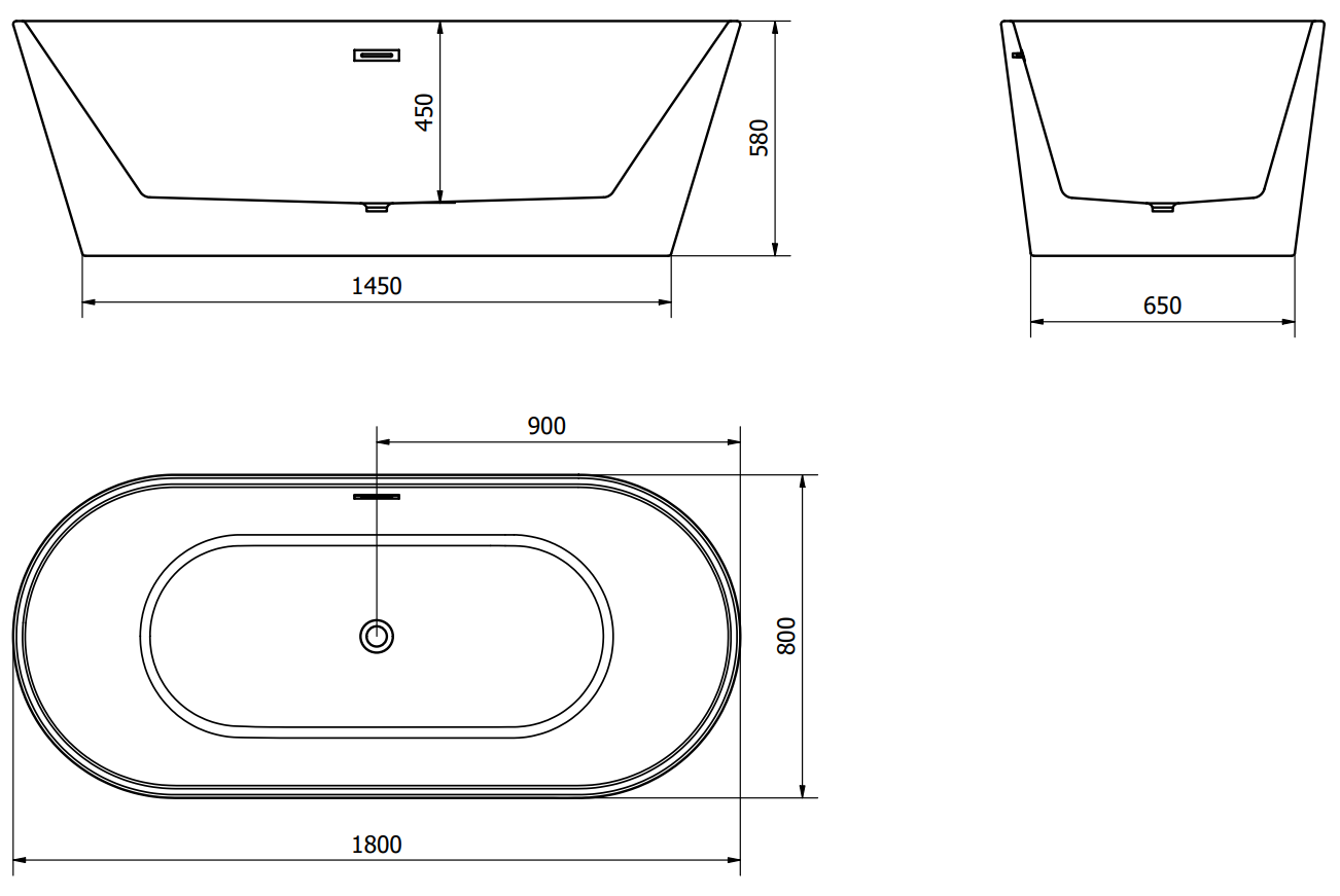 Mexen Luna vasca da bagno autoportante 180 x 80 cm, bianca/nera, troppo pieno dorato - 52031808075-50