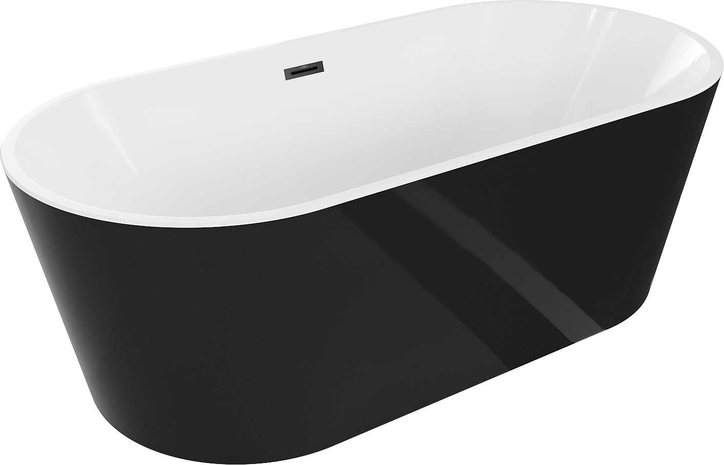 Mexen Luna vasca da bagno freestanding 180 x 80 cm, bianca/nera, troppo pieno nero - 52031808075-70