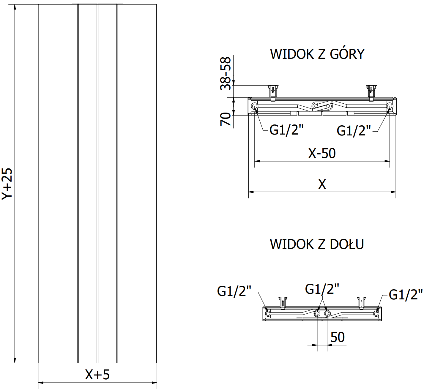 - 2xG ½″ inferiore centrale