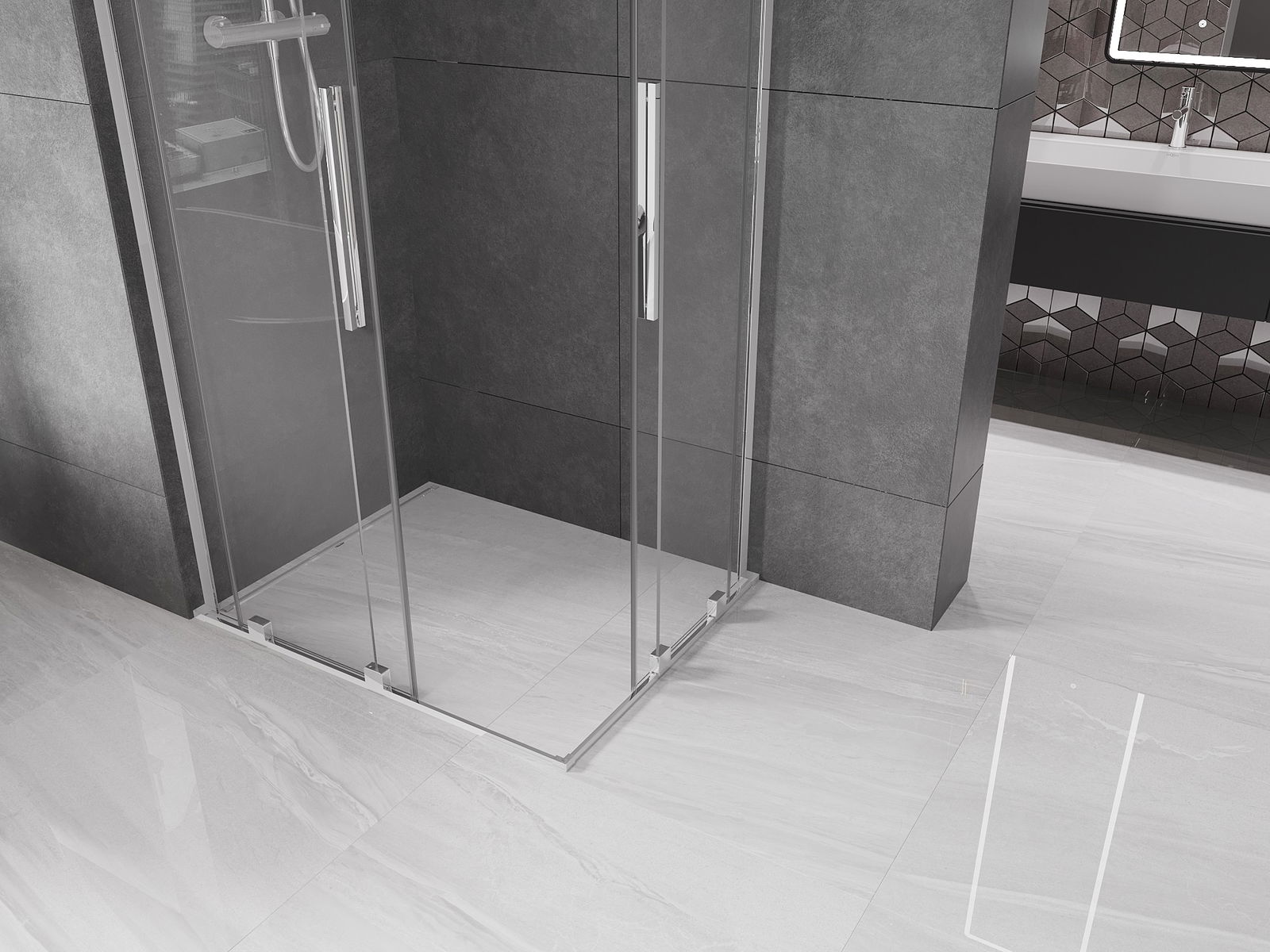 Il prodotto, a seconda delle esigenze, può essere installato sia sul piatto doccia che direttamente sul pavimento. Il metodo di installazione universale consente di adattare il prodotto a diversi tipi di bagni e configurazioni di spazio.