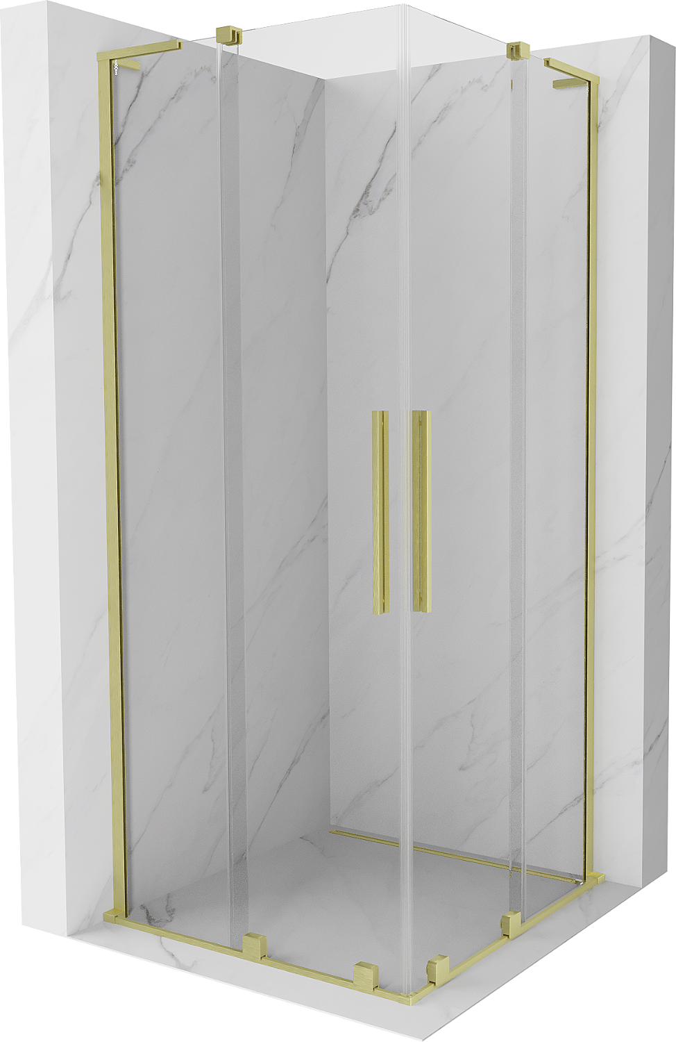 Mexen Velar L Duo cabina doccia scorrevole 100 x 100 cm, trasparente, oro spazzolato - 871-100-100-02-03-55