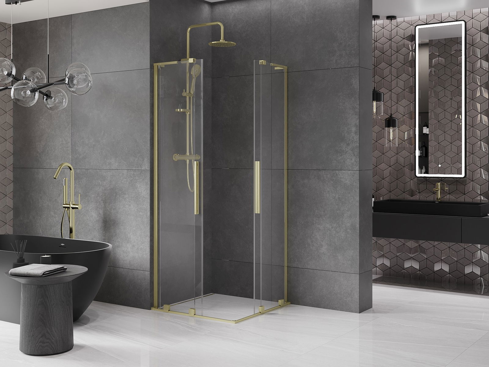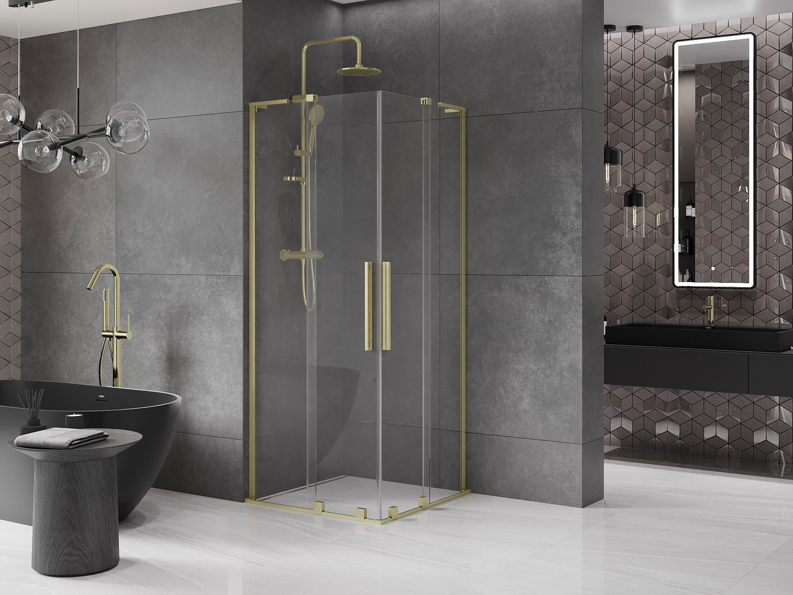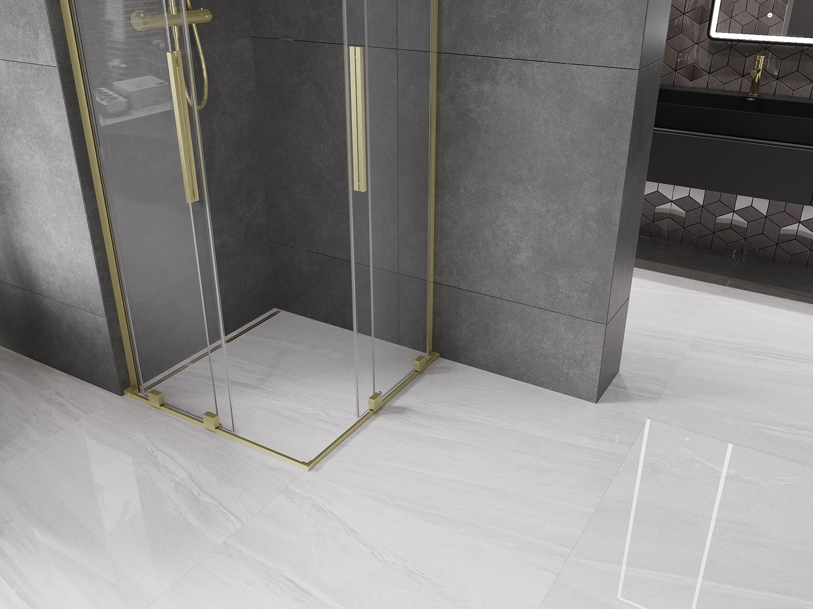 Il prodotto, a seconda delle esigenze, può essere installato sia sul piatto doccia che direttamente sul pavimento. Il metodo di installazione universale consente di adattare il prodotto a diversi tipi di bagni e configurazioni di spazio.