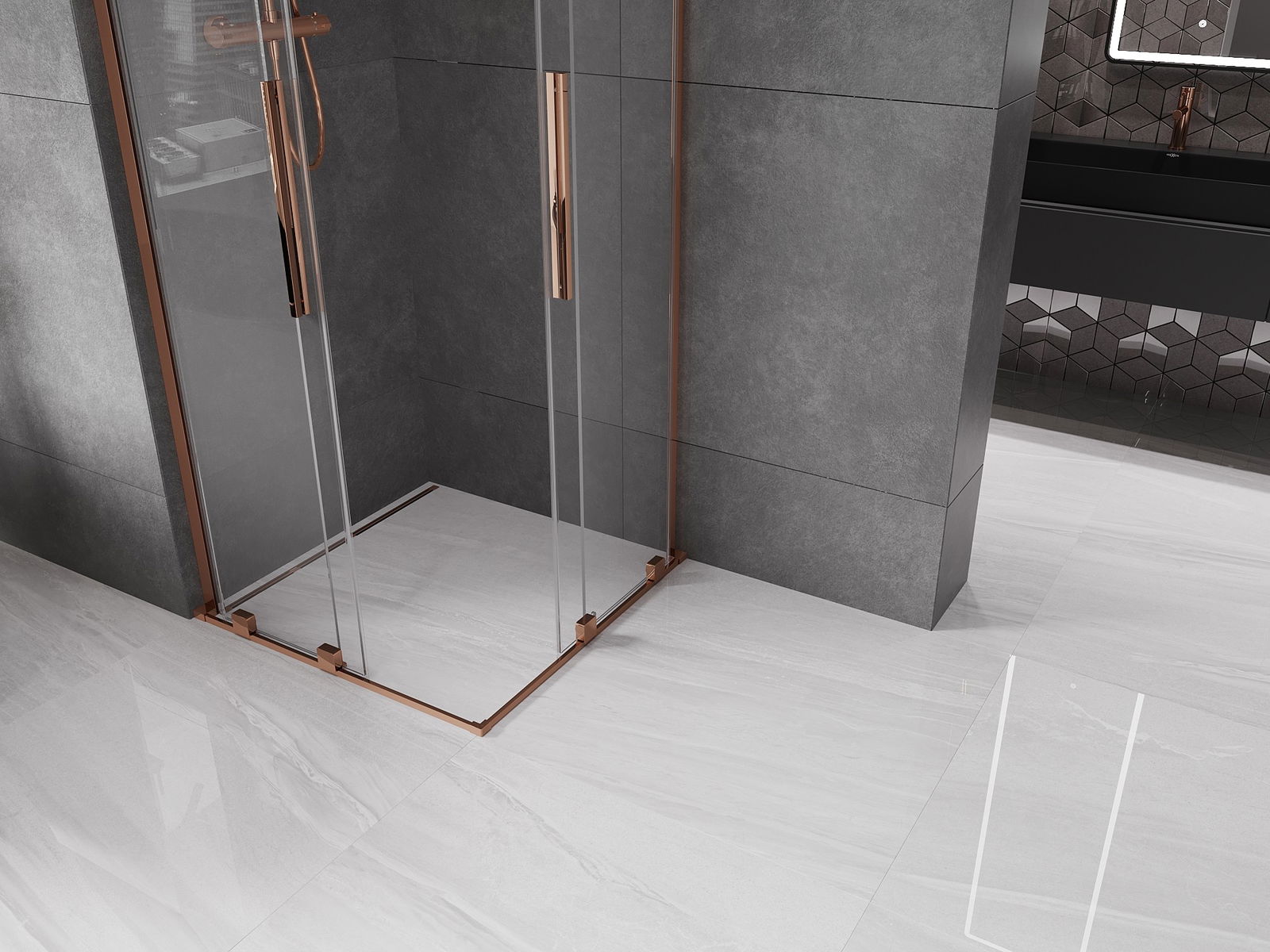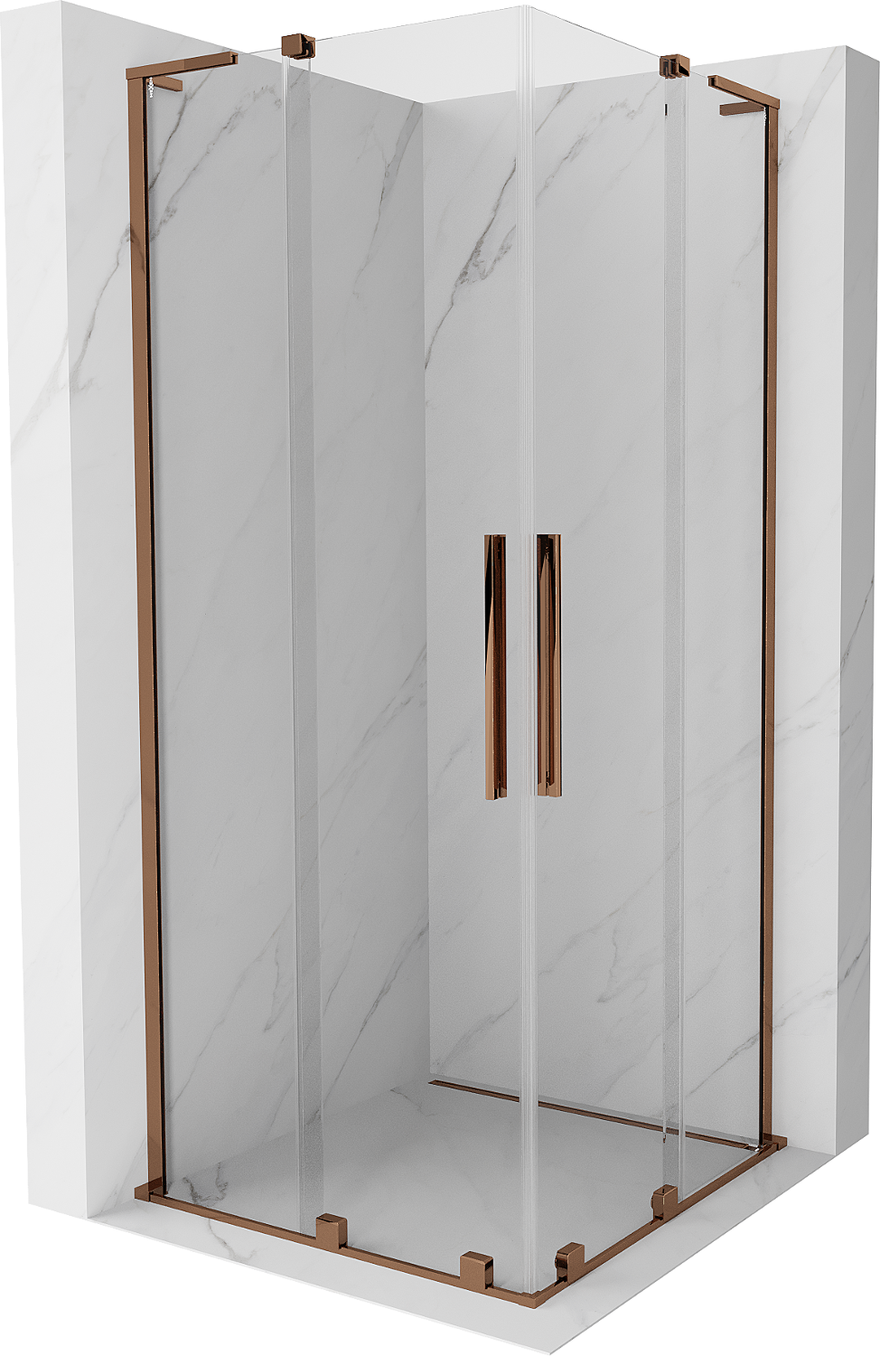Mexen Velar L Duo cabina doccia scorrevole 100 x 100 cm, trasparente, oro rosa - 871-100-100-02-03-60