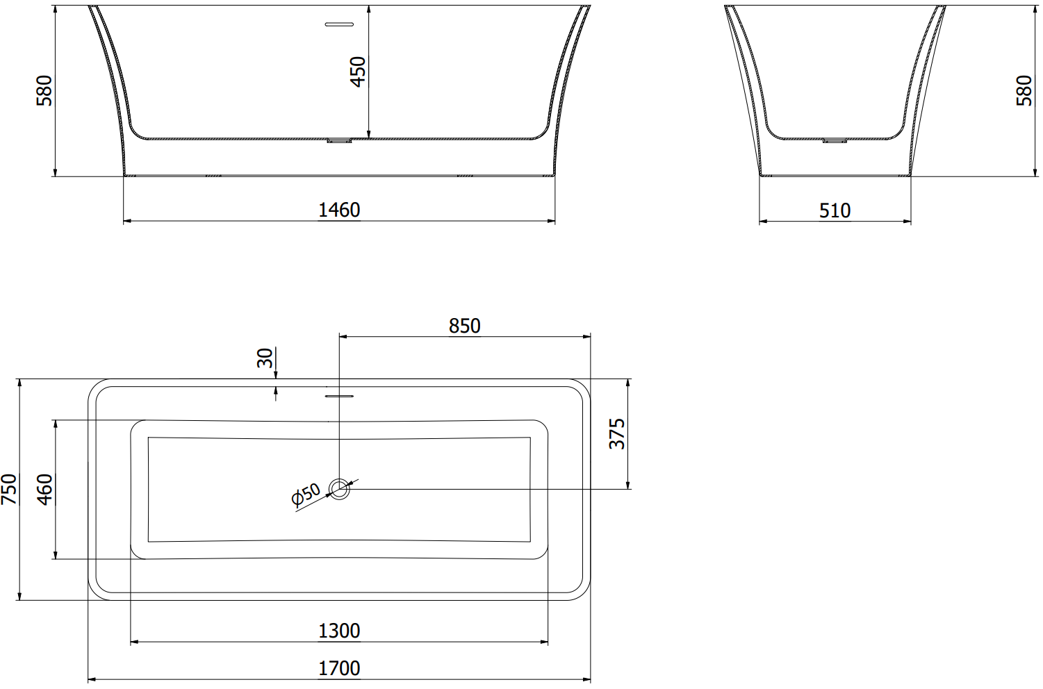 Mexen Tonia vasca da bagno indipendente 170 x 75 cm, bianca, troppopieno nero - 52171707500-70