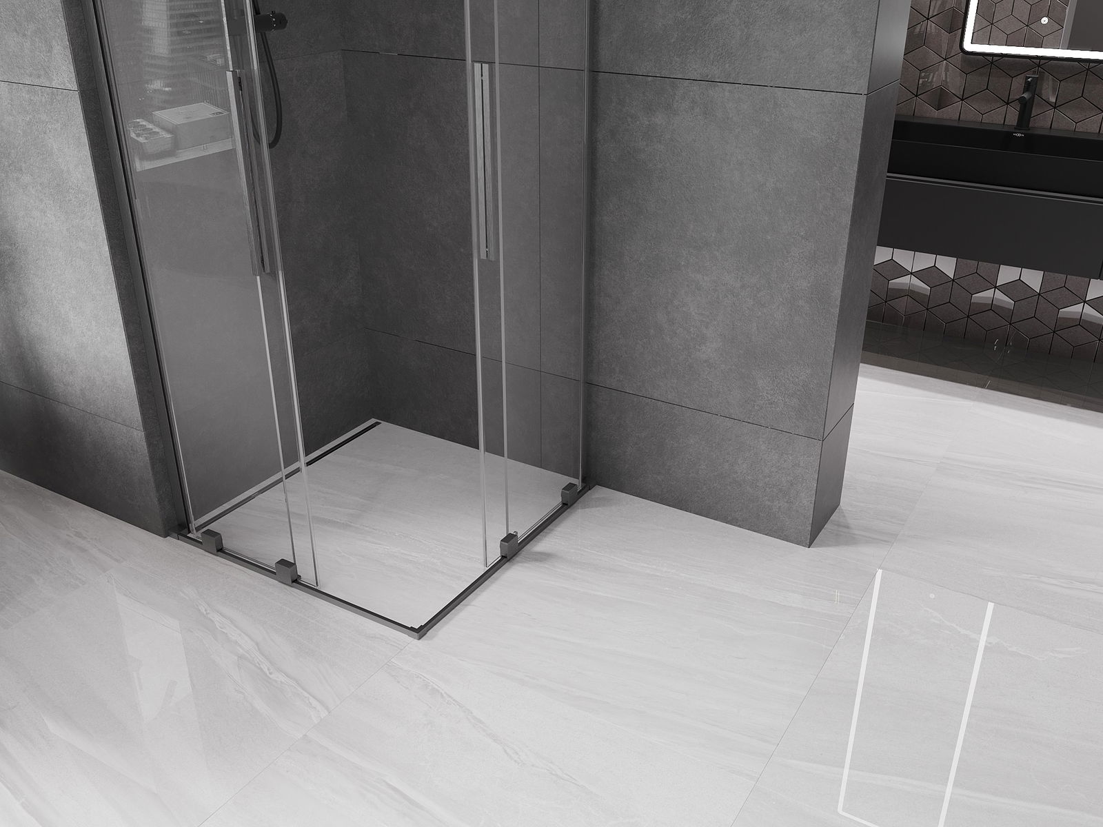 Mexen Velar L Cabina doccia scorrevole Duo 80 x 80 cm, trasparente, grigio canna di fucile spazzolato - 871-080-080-02-03-66