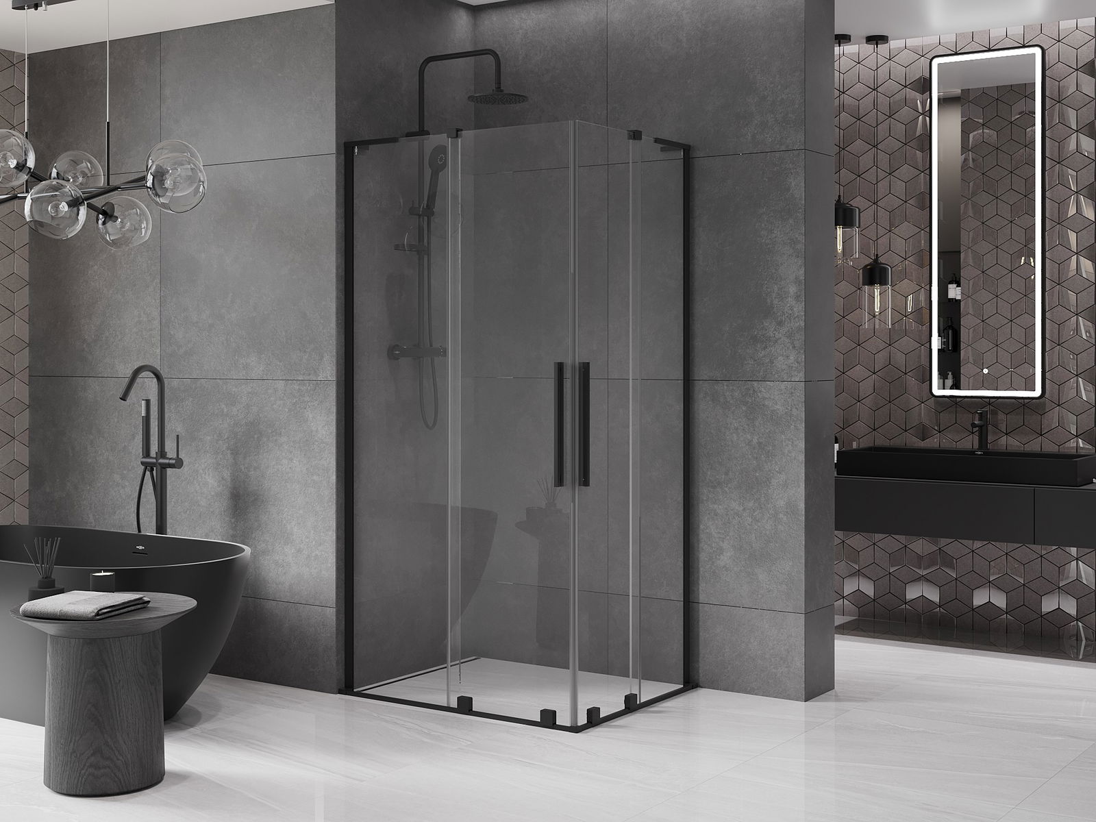 Mexen Velar L Duo cabina doccia scorrevole 100 x 90 cm, trasparente, nero - 871-100-090-02-03-70