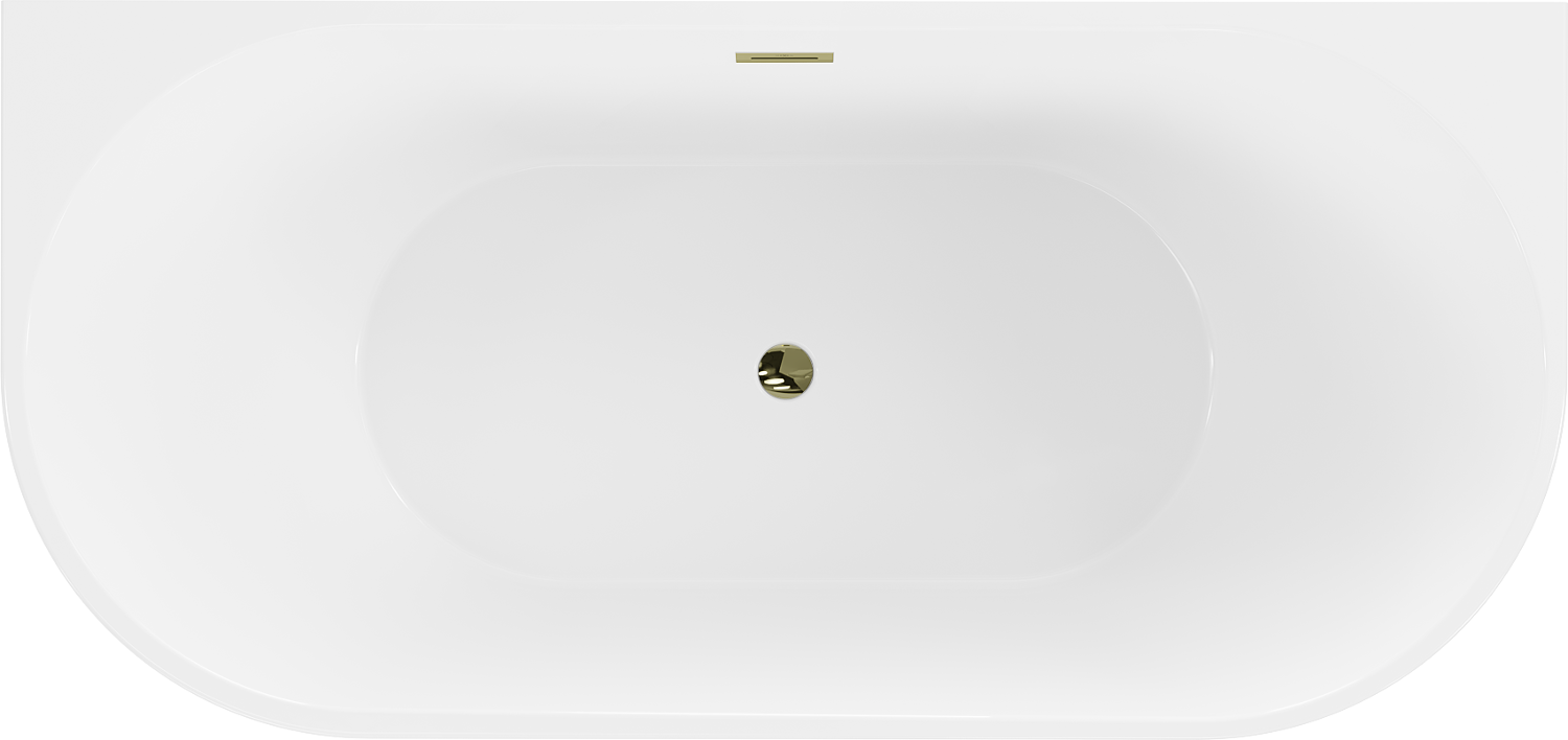 Mexen Oval vasca da bagno freestanding adiacente alla parete 150 x 75 cm, bianca, troppo pieno dorato - 52671507500-50
