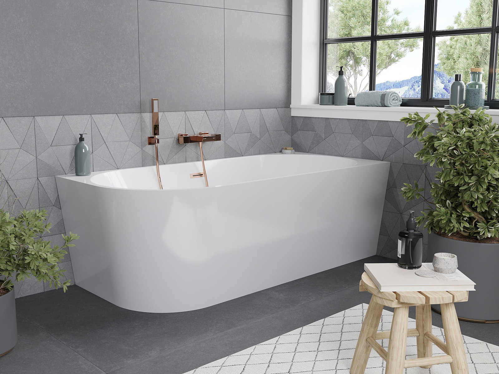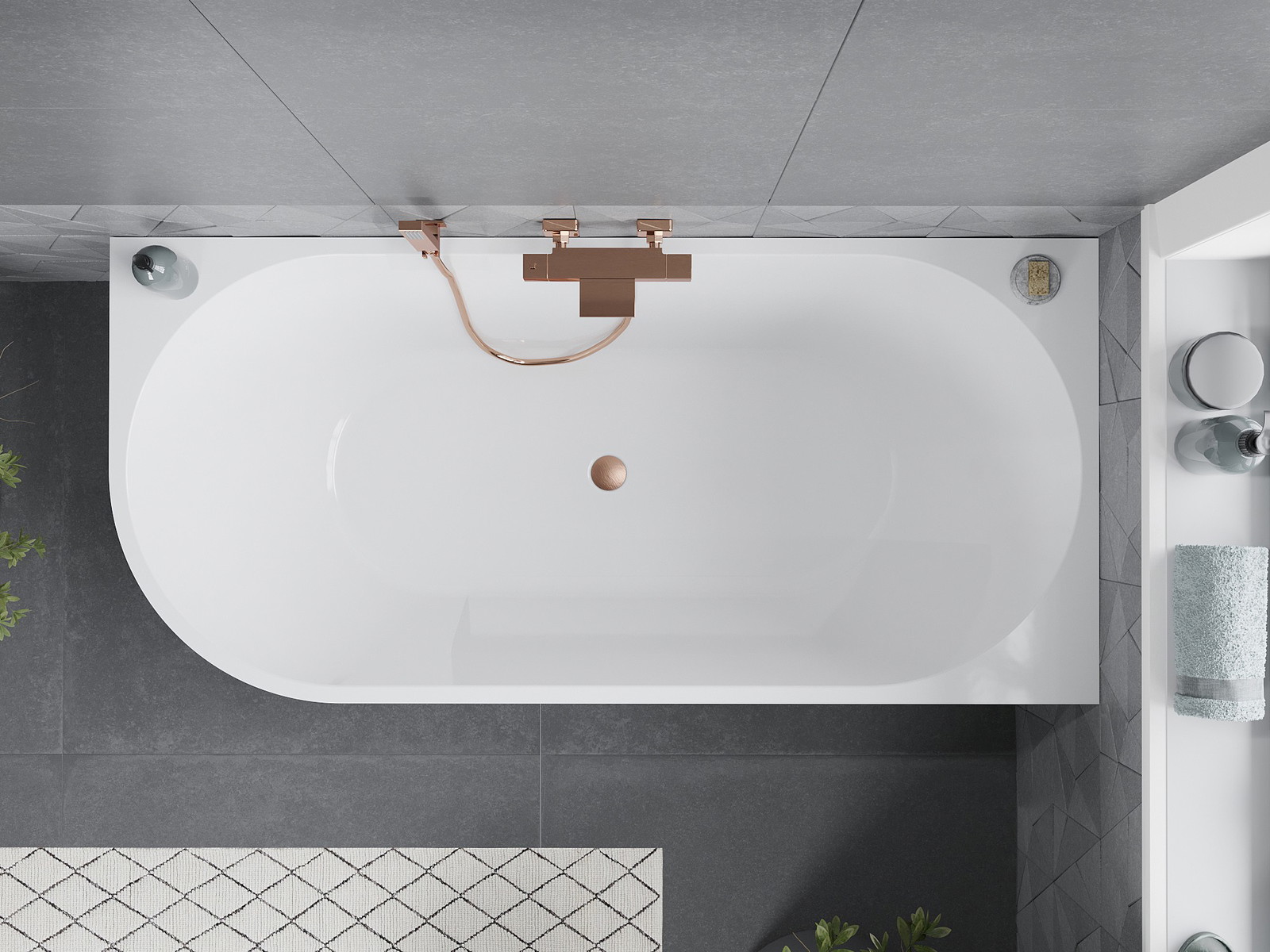 Mexen Mia è un'elegante vasca da bagno angolare freestanding di dimensioni 170 x 80 cm, realizzata in acrilico sanitario. Il suo moderno colore bianco e la finitura in rame spazzolato aggiungono lusso a qualsiasi bagno. La vasca è resistente all'opacizzazione e ai raggi UV, garantendo un aspetto duraturo. Inoltre, il suo foro troppopieno accuratamente progettato facilita l'uso quotidiano. Il set comprende sifone e tappo tipo clic clac, rendendola una soluzione completa per il tuo ambiente.