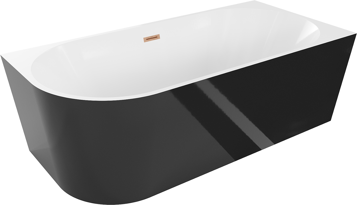 Mexen Mia vasca indipendente angolare destra 180 x 80 cm, bianca/nera, troppo pieno in rame spazzolato - 52691808075P-65