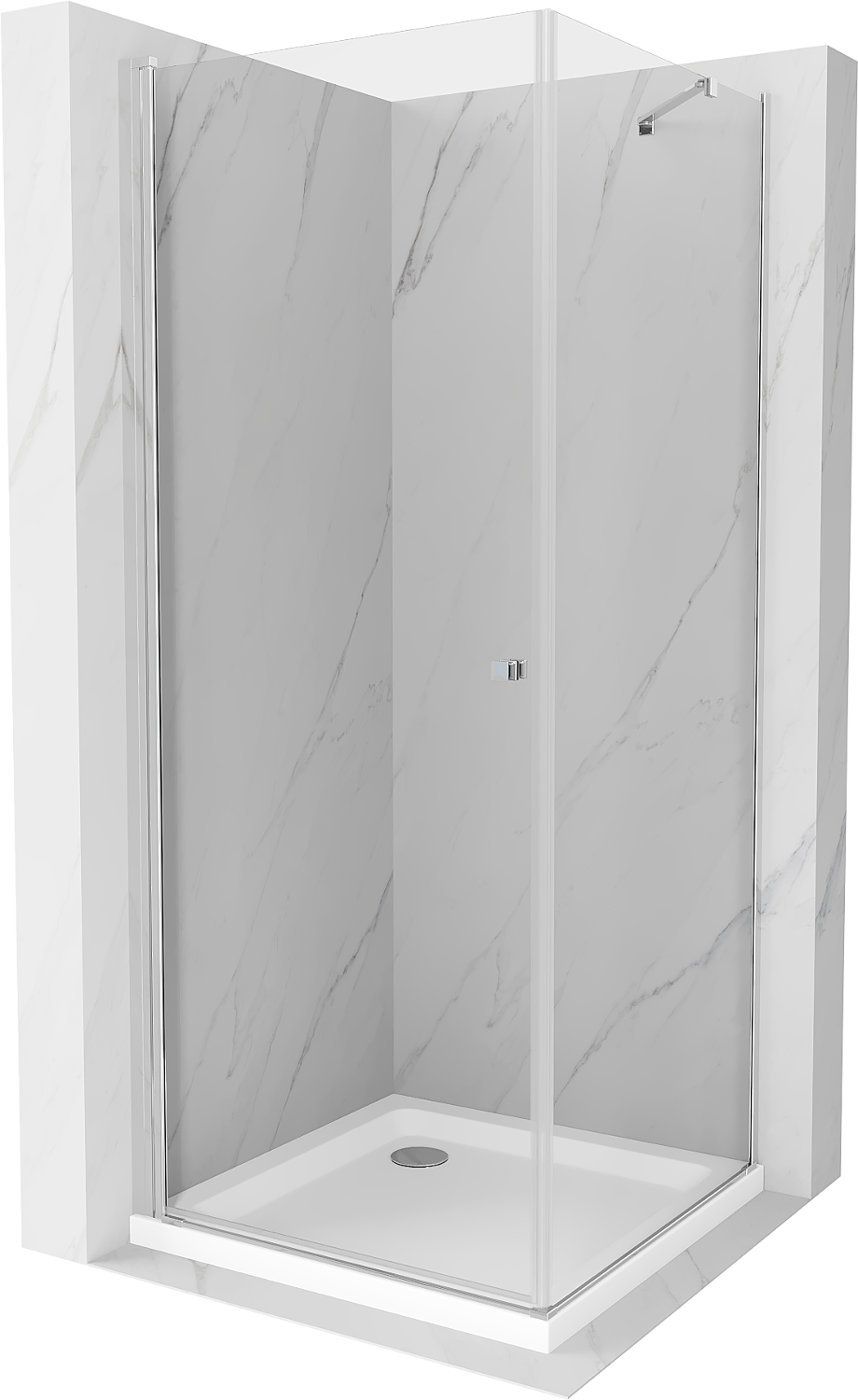 Mexen Pretoria cabina doccia ad anta battente 80 x 80 cm, trasparente, cromo + piatto doccia Flat - 852-080-080-01-00-4010