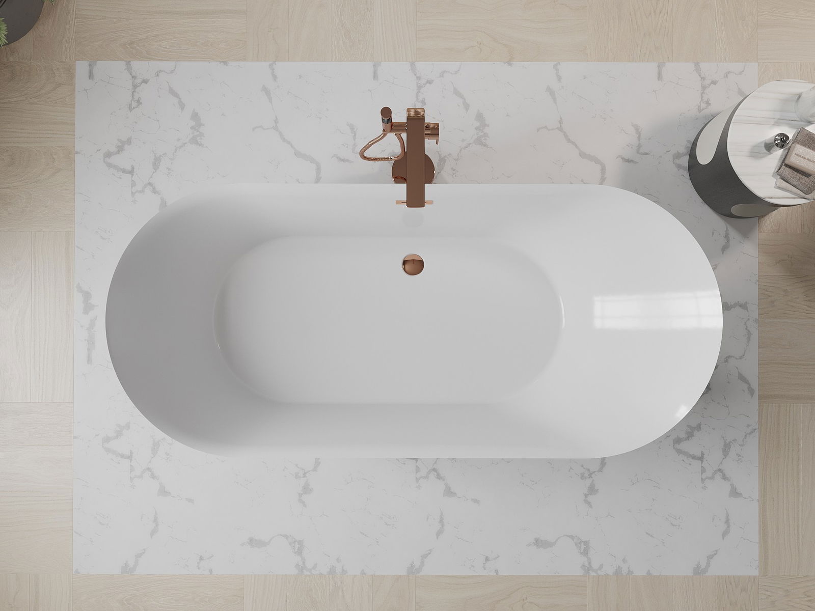 Mexen Roxy vasca da bagno indipendente 180 x 85 cm, bianca, troppopieno oro rosa - 51201808500-60