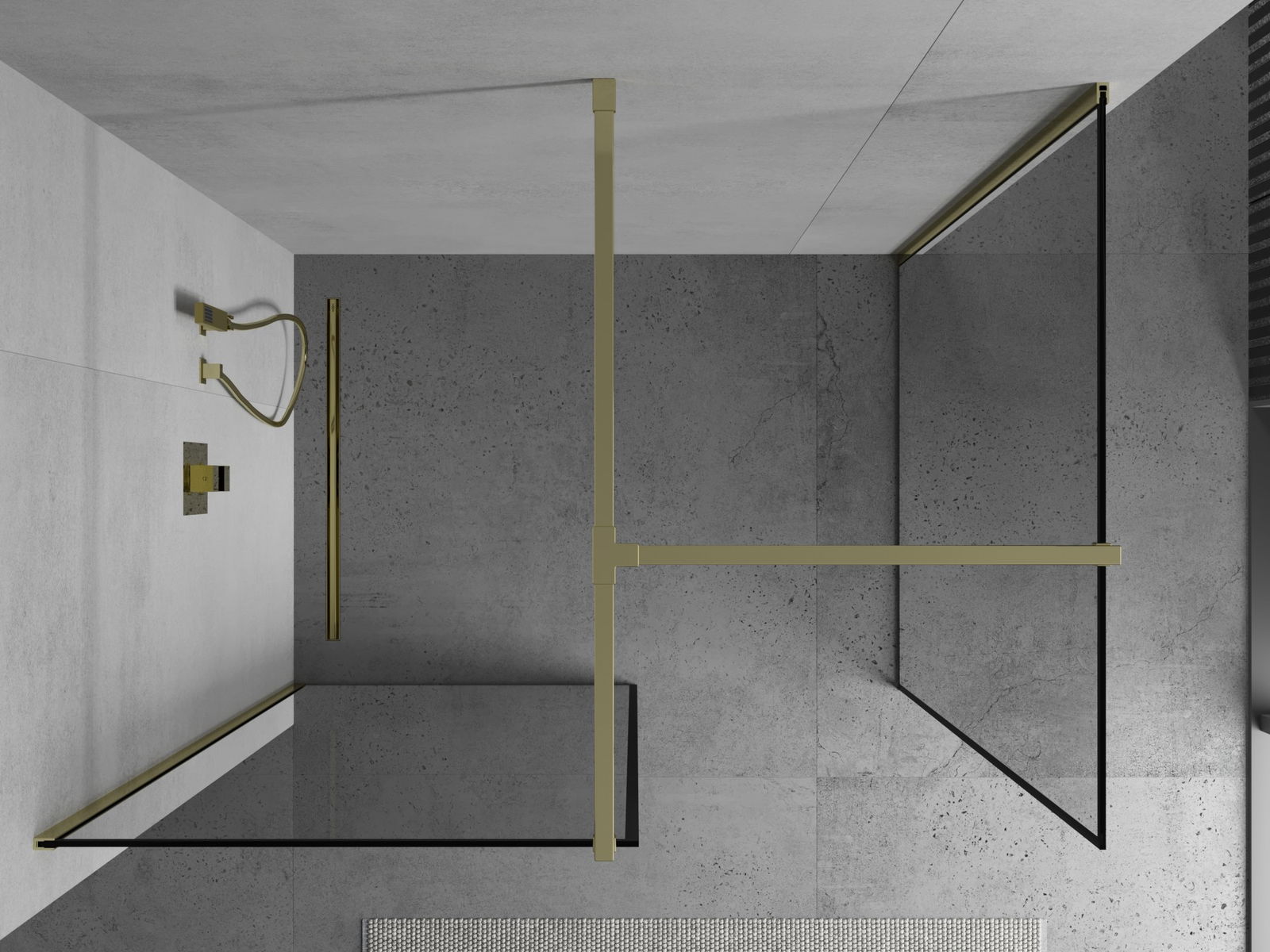 Mexen Kioto parete doccia Walk-in 100 x 100 cm, cornice nera, oro - 800-100-202-50-70-100