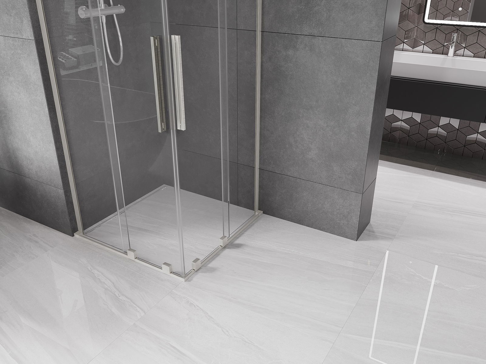 Il prodotto, a seconda delle esigenze, può essere installato sia sul piatto doccia che direttamente sul pavimento. Il metodo di installazione universale consente di adattare il prodotto a diversi tipi di bagni e configurazioni di spazio.