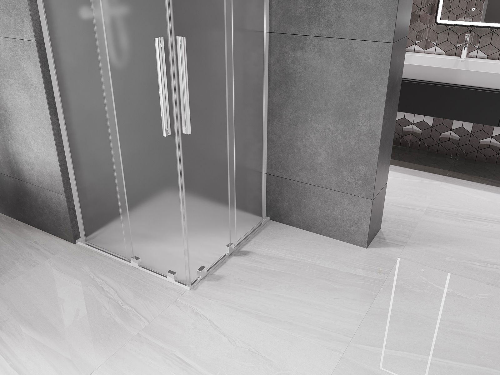 Mexen Velar L Duo cabina doccia scorrevole 80 x 80 cm, brina, cromo - 871-080-080-02-33-01