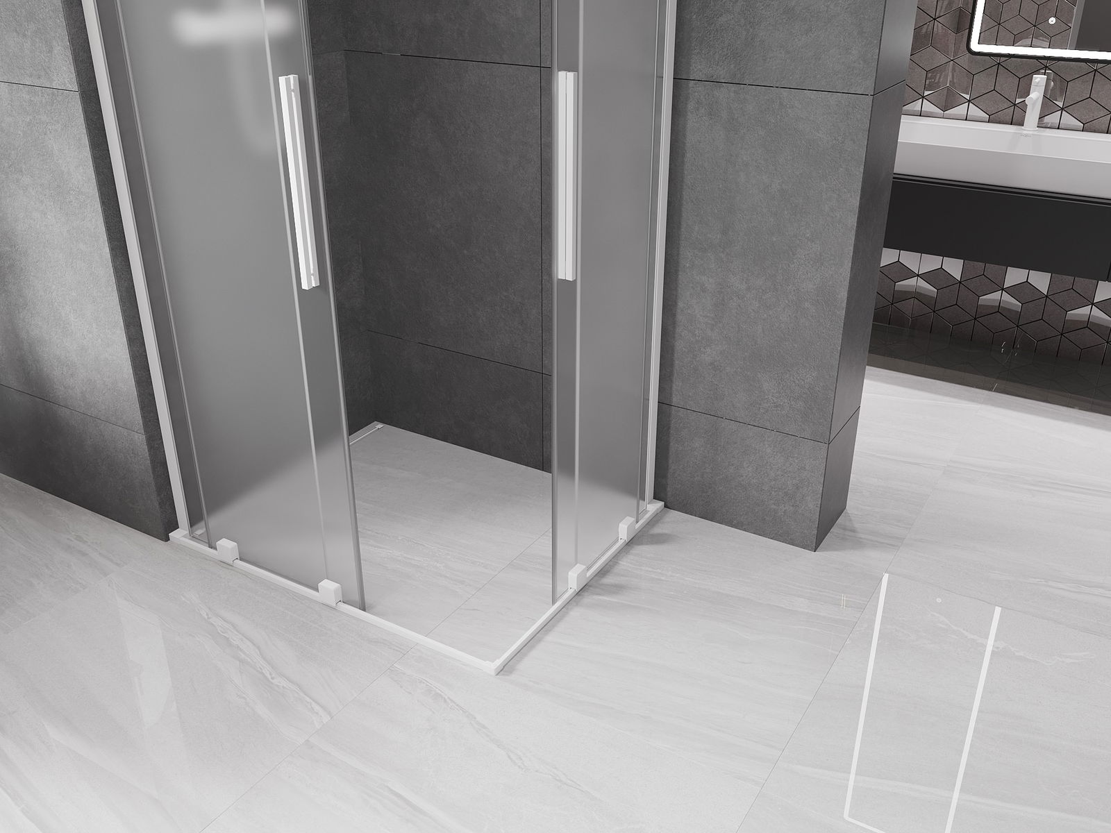 Mexen Velar L Duo cabina doccia scorrevole 90 x 80 cm, satinato, bianco - 871-090-080-02-33-20