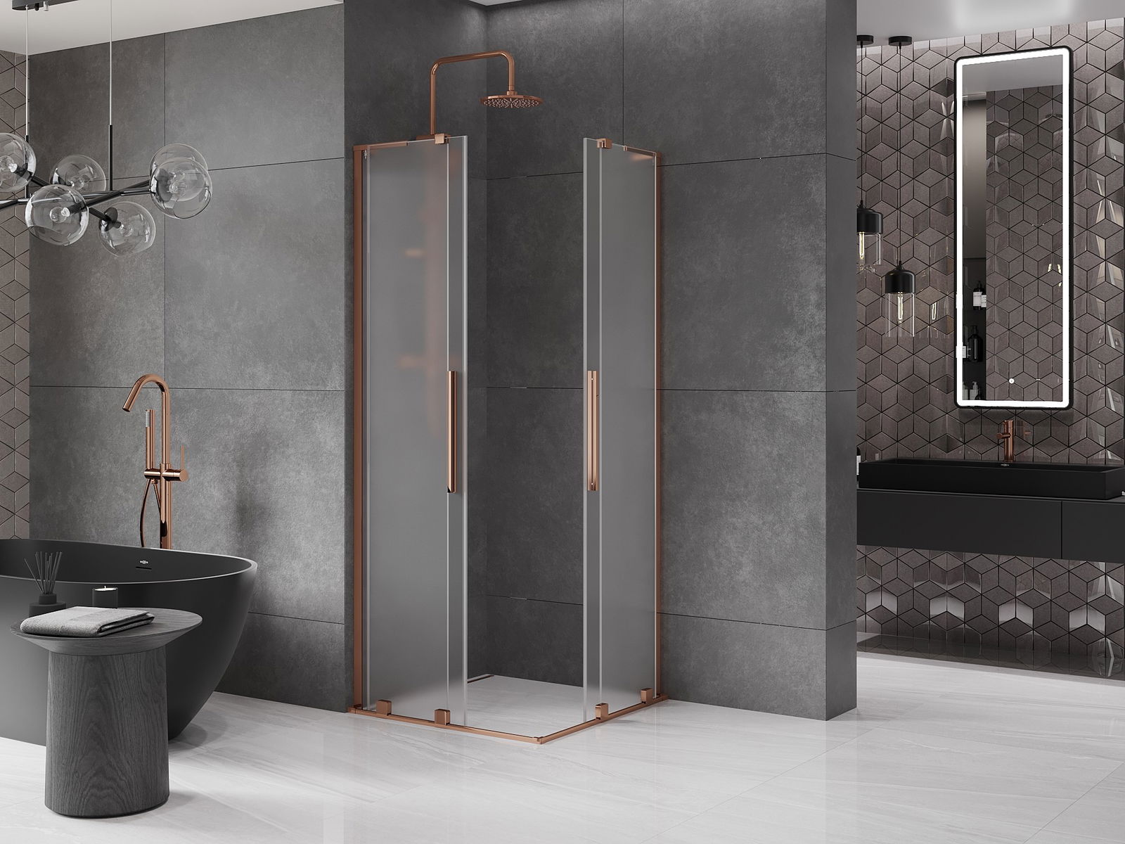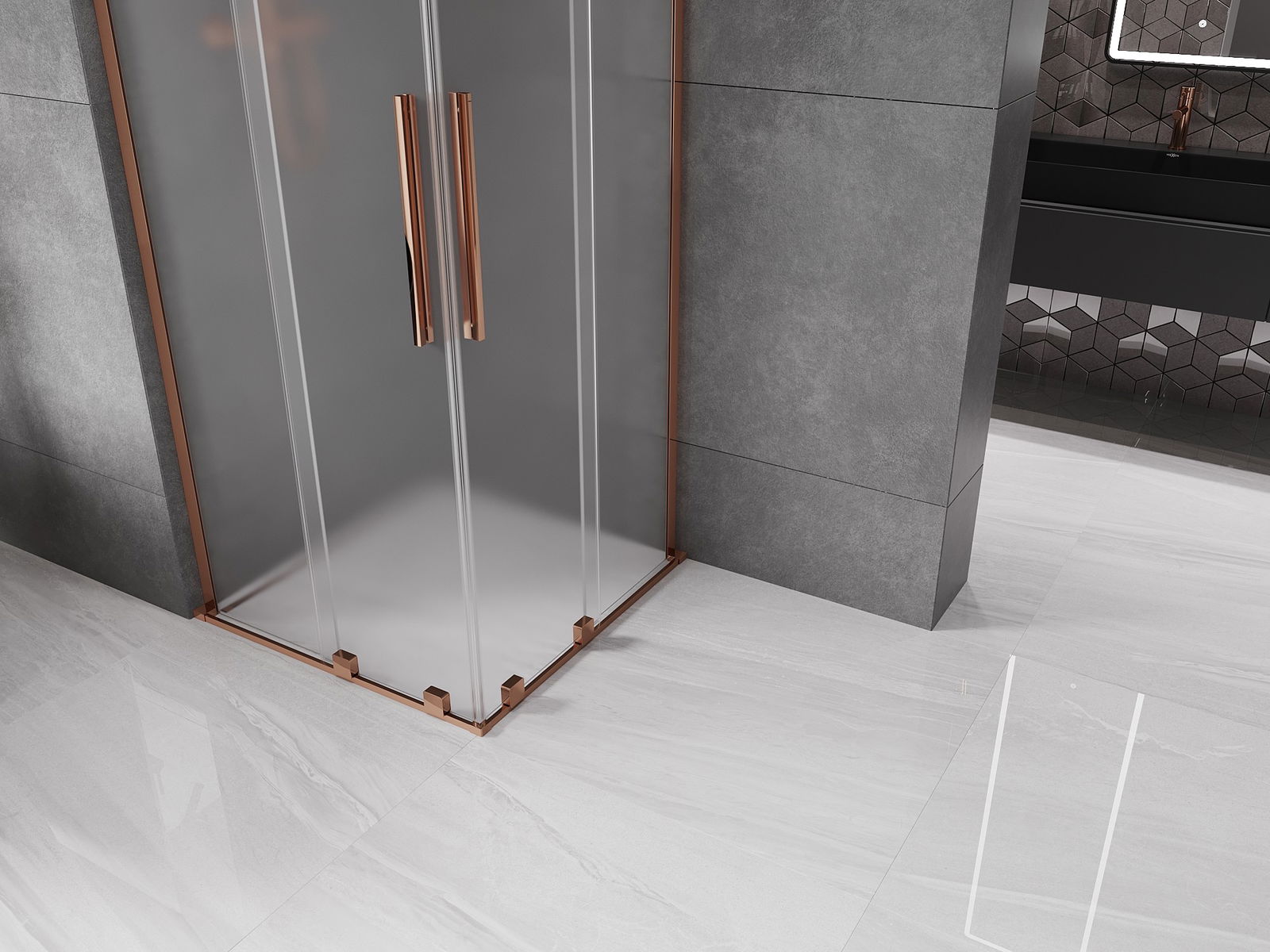 Mexen Velar L Duo cabina doccia scorrevole 80 x 80 cm, ghiacciata, oro rosa - 871-080-080-02-33-60
