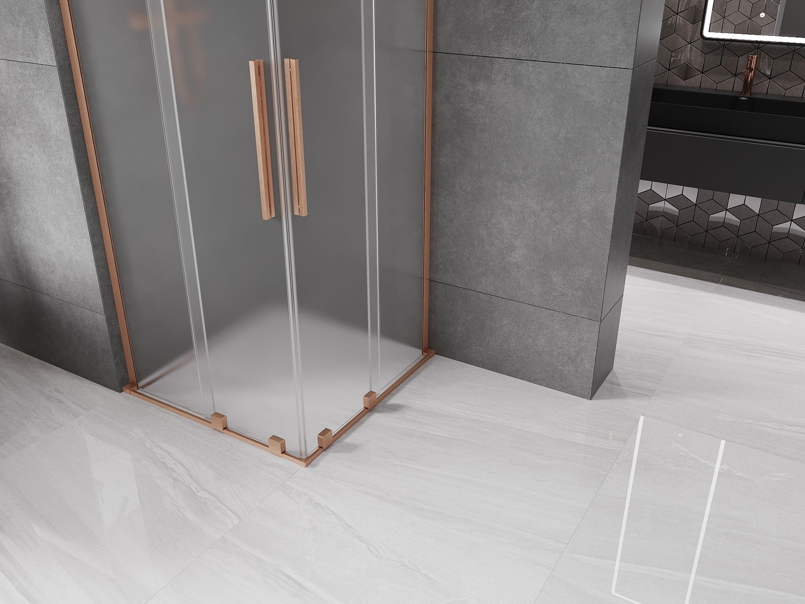 Mexen Velar L Duo cabina doccia scorrevole 90 x 90 cm, brina, rame spazzolato - 871-090-090-02-33-65