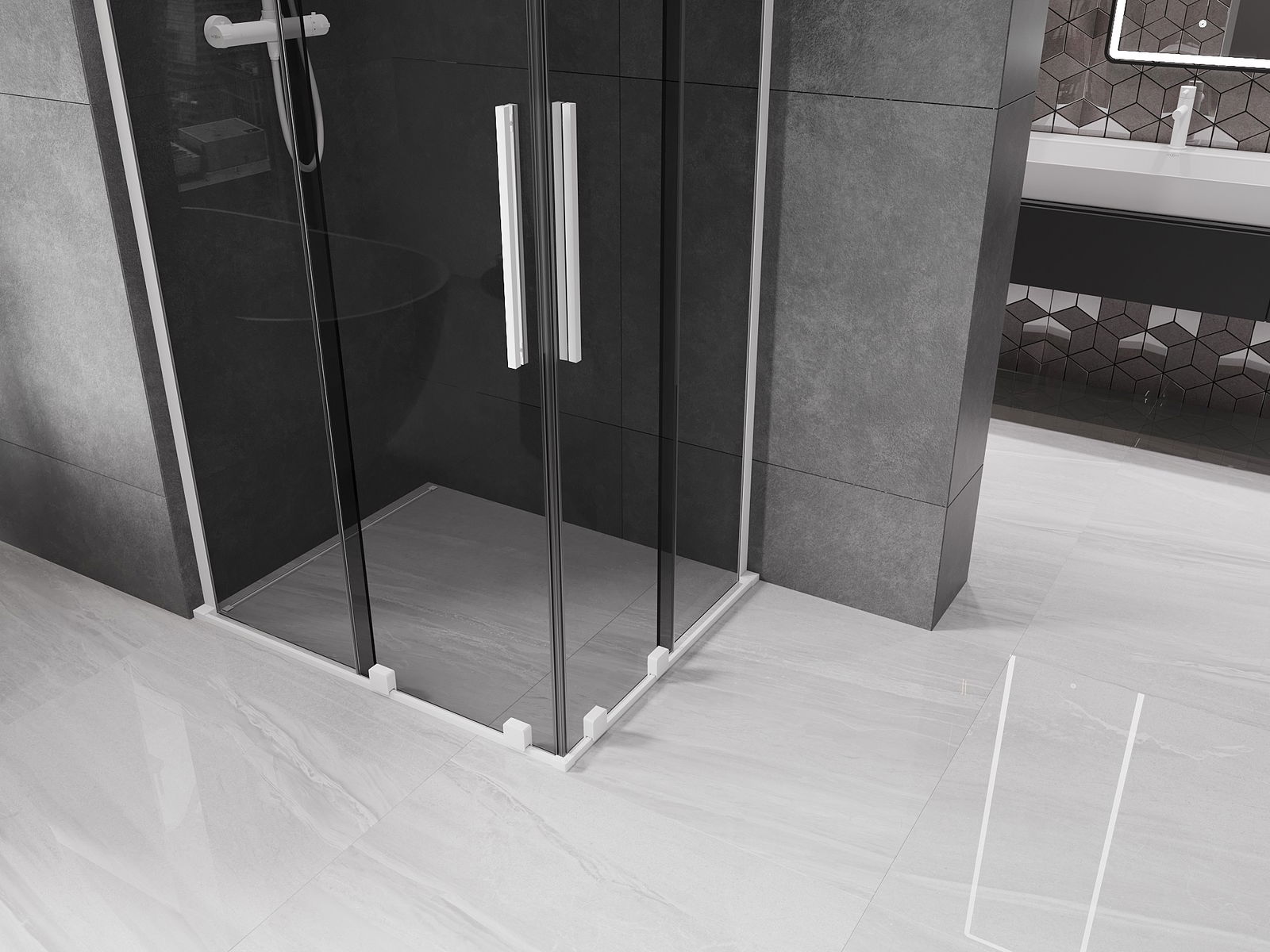 Il prodotto, a seconda delle esigenze, può essere installato sia sul piatto doccia che direttamente sul pavimento. Il metodo di installazione universale consente di adattare il prodotto a diversi tipi di bagni e configurazioni di spazio.