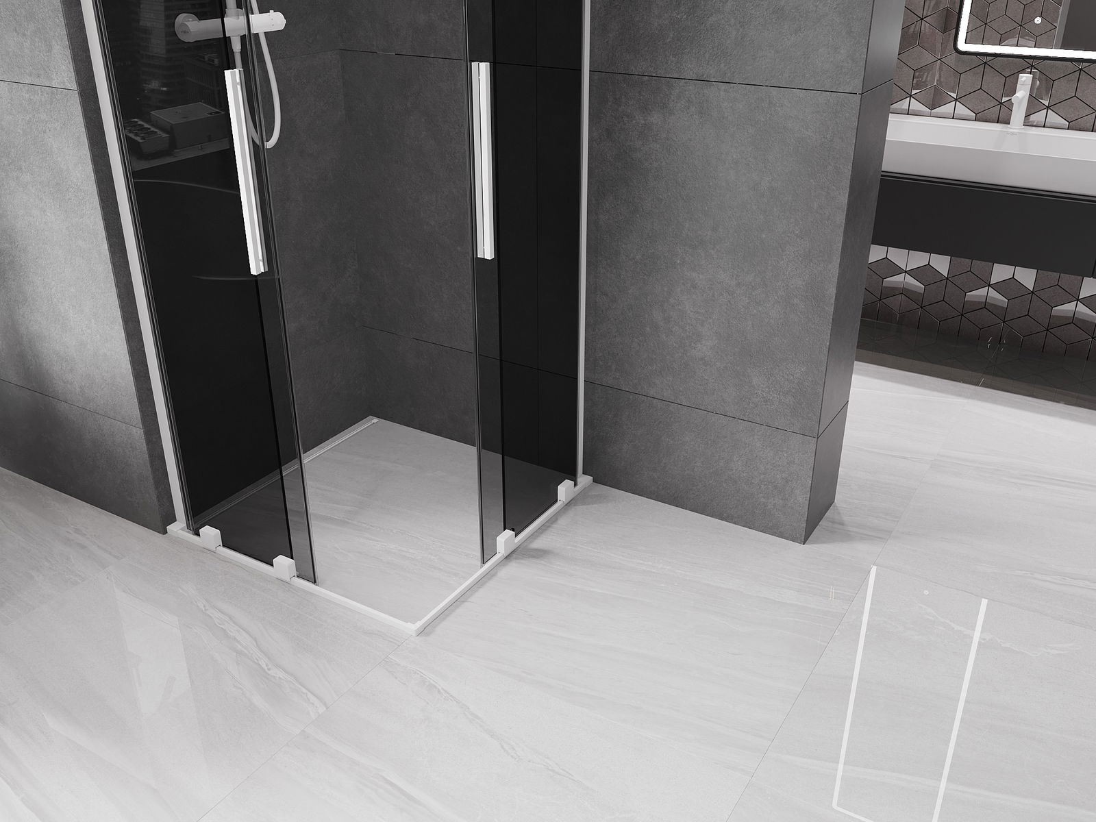 Il prodotto, a seconda delle esigenze, può essere installato sia sul piatto doccia che direttamente sul pavimento. Il metodo di installazione universale consente di adattare il prodotto a diversi tipi di bagni e configurazioni di spazio.