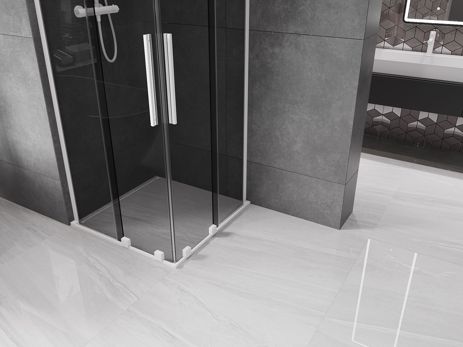 Mexen Velar L Duo cabina doccia scorrevole 90 x 90 cm, grafite, bianca - 871-090-090-02-43-20