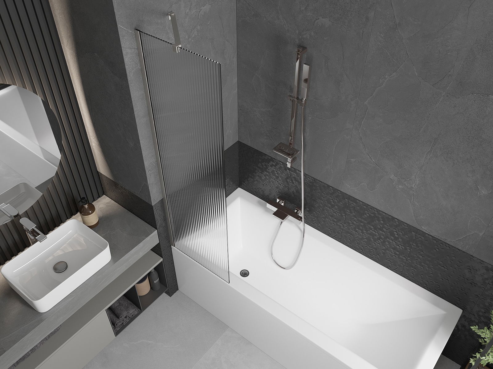Mexen Next paravento da vasca da bagno a 1 anta 50 x 150 cm, righe, nichel spazzolato - 895-050-000-00-09-97