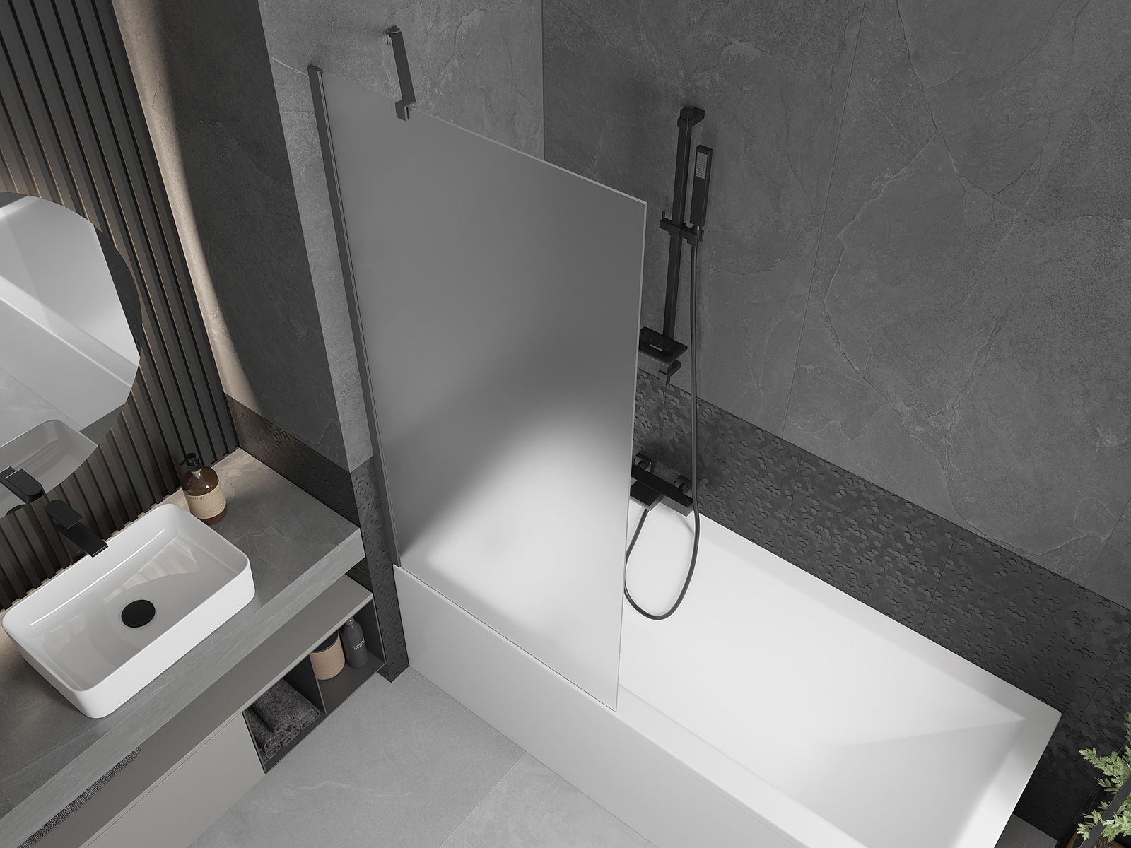 Mexen Next paratia per vasca da bagno a 1 anta 80 x 150 cm, smerigliato, gun metal - 895-080-000-00-30-95