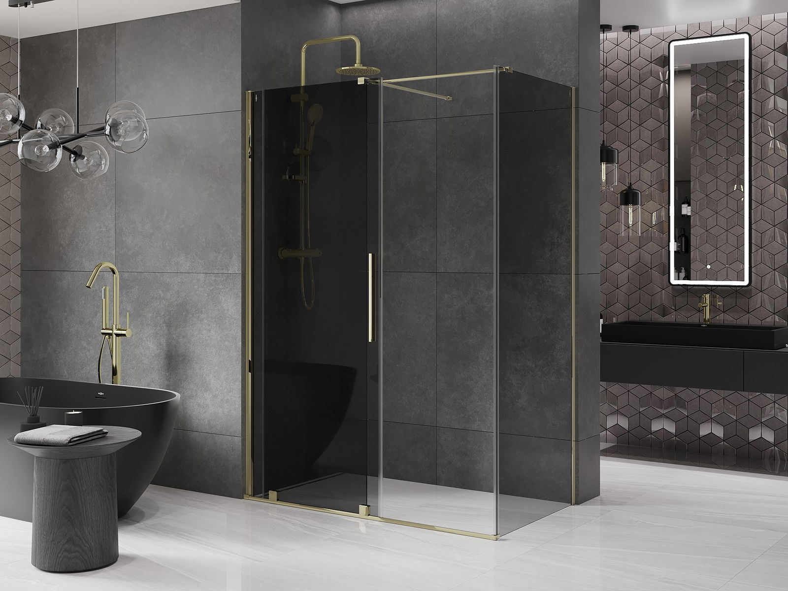 Mexen Velar cabina doccia scorrevole 160 x 85 cm, grafite, oro - 871-160-085-41-50