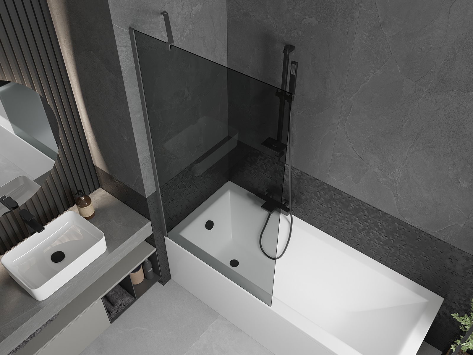 Mexen Next paratia per vasca da bagno 1 anta 90 x 150 cm, grafite, metallo canna di fucile - 895-090-000-00-40-95