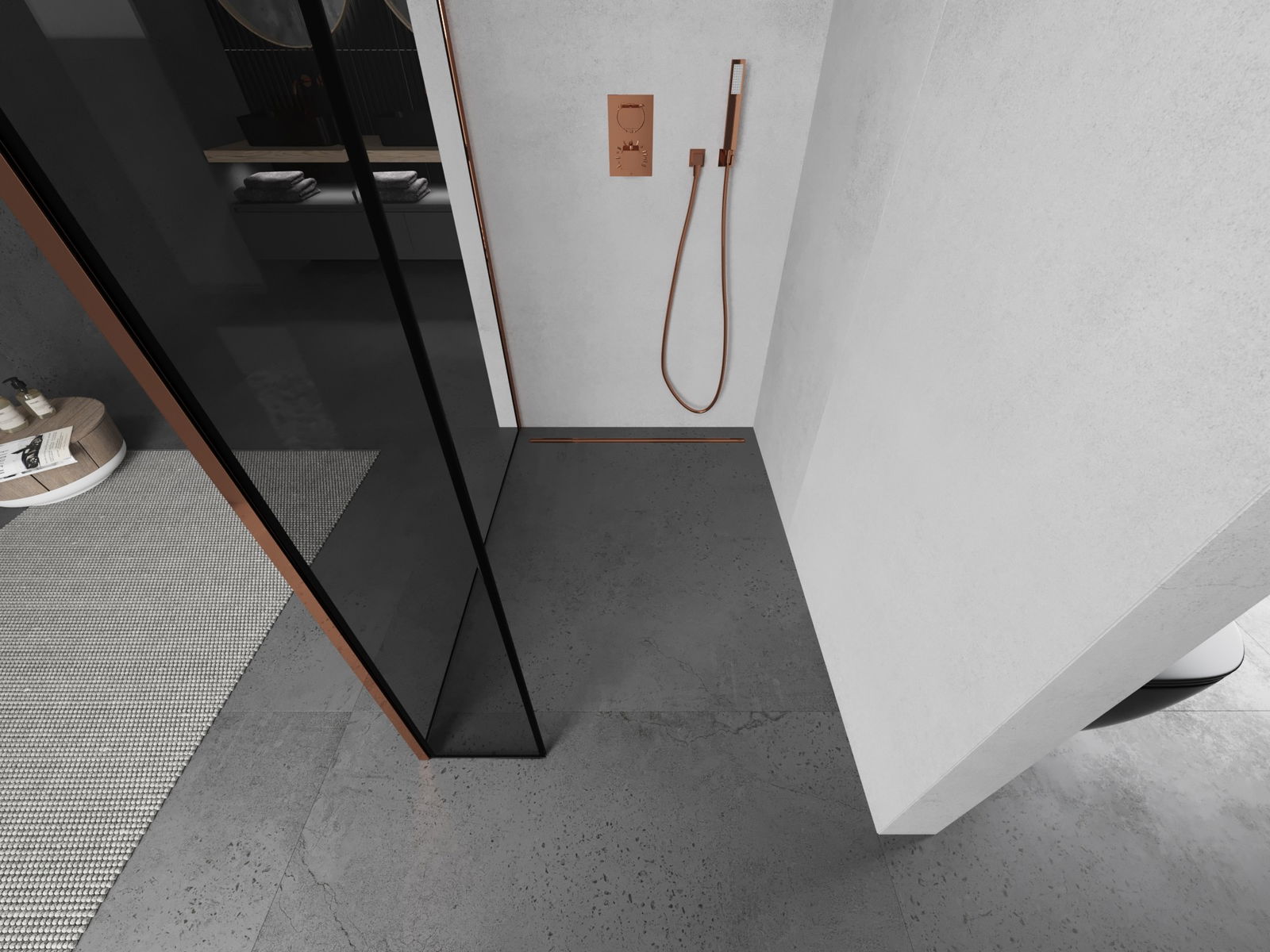 Mexen Kioto parete doccia walk-in 140 x 30 cm, cornice nera, oro rosa - 800-140-212-60-70-030